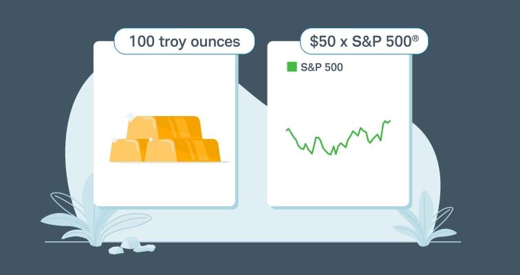 For example, one contract of crude oil (/CL) represents 1,000 barrels. And one contract of gold futures (/GC) represents 100 troy ounces. However, the E-mini S&P 500 futures (/ES) represent $50 times the price of the S&P 500 Index, while the Micro E-mini S&P futures (/MES) represent $5 times the price of the S&P 500.