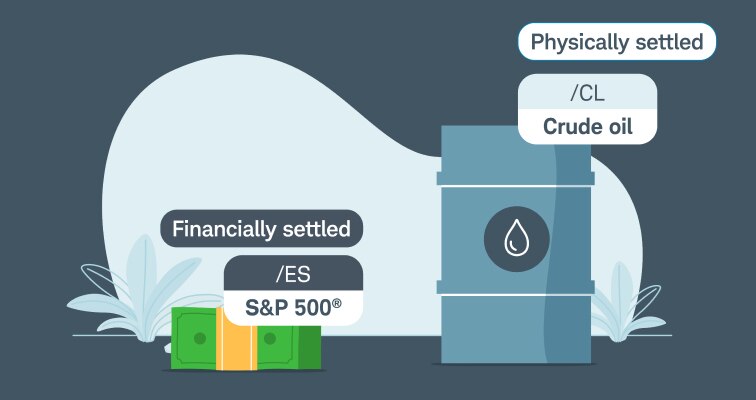 - Physically settled futures contracts expire directly into the physical commodity. /CL is an example of a physically settled product. At expiration, anyone long a contract in /CL will receive 1,000 barrels of crude oil. However, Charles Schwab Futures and Forex LLC doesn't allow clients to take physical delivery of a futures contract, and are cash settled.
