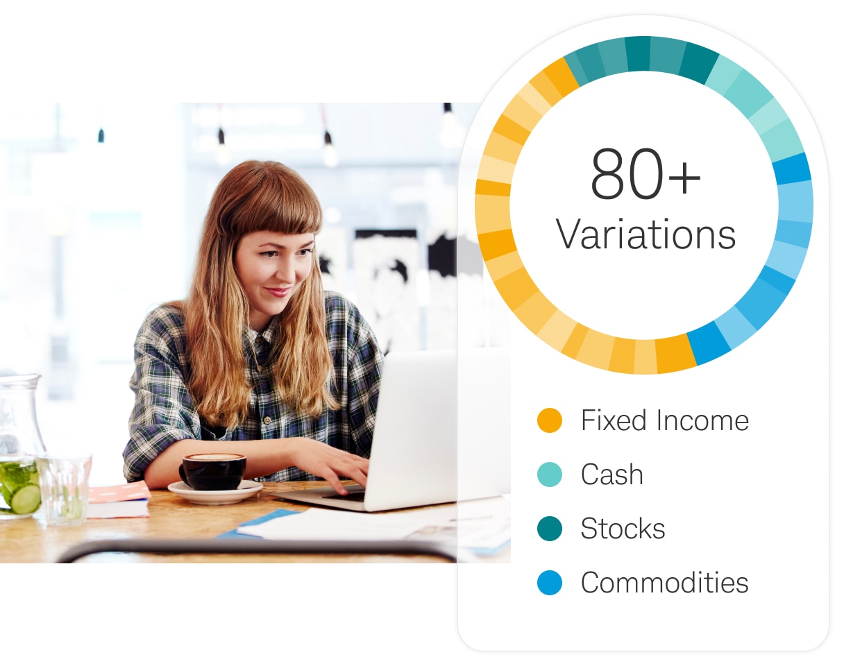 Based on your answers about your goals, risk tolerance, and timeline, Schwab Intelligent Portfolios will provide you a tailored portfolio from more than 80 variations:
