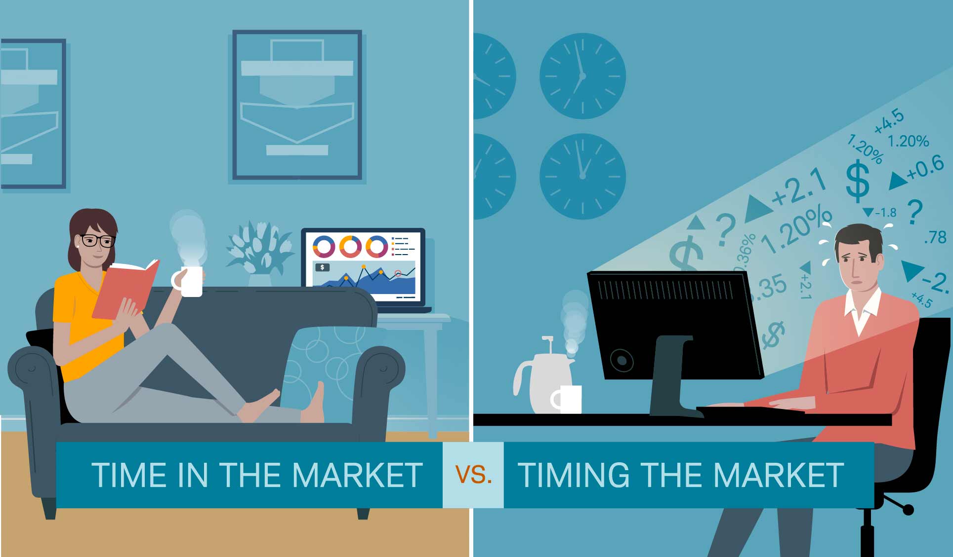 The objective of Schwab Intelligent Portfolios is not to try to beat the market but rather to help you achieve better outcomes over time by staying consistently invested in a diversified portfolio as the market fluctuates. This helps you take the emotion out of investing by not reacting to external events while maintaining a long-term view of your goals. It also means that Schwab Intelligent Portfolios' performance may be better or worse than specific market benchmarks.