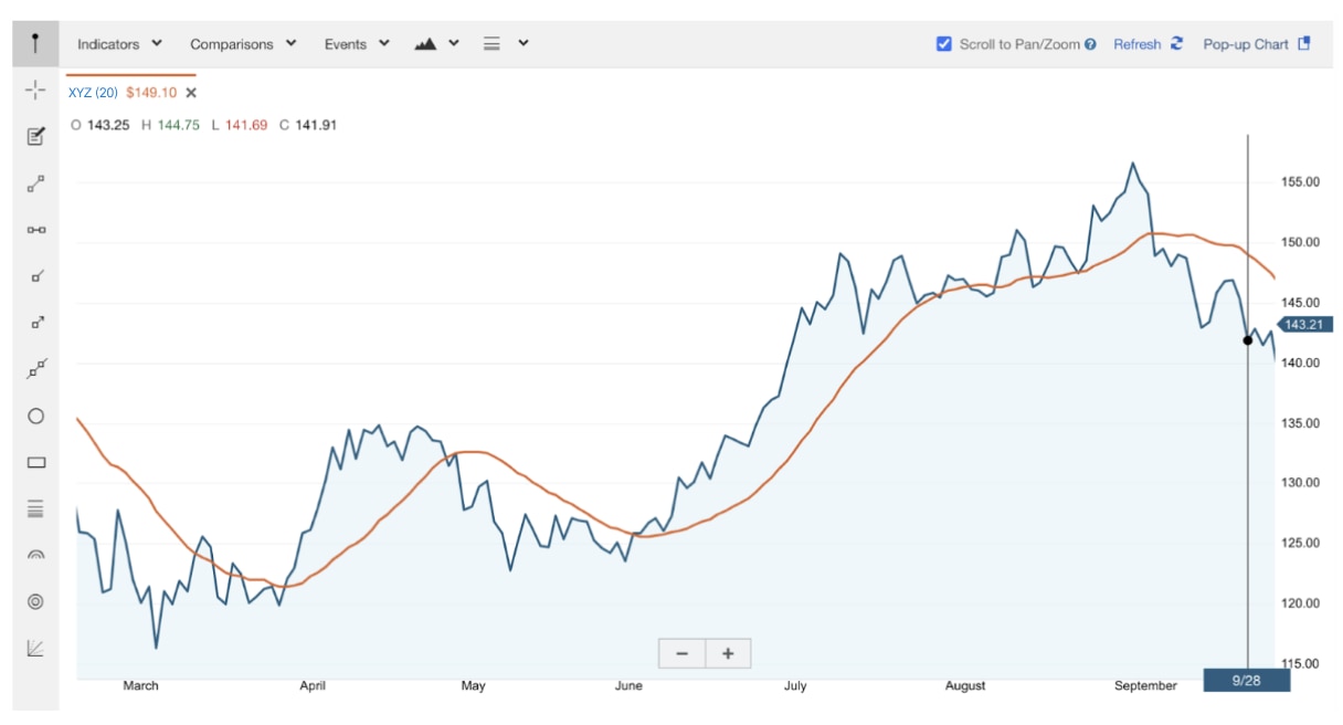 Time your trades with interactive price charts using overlaid indicators and comparisons.