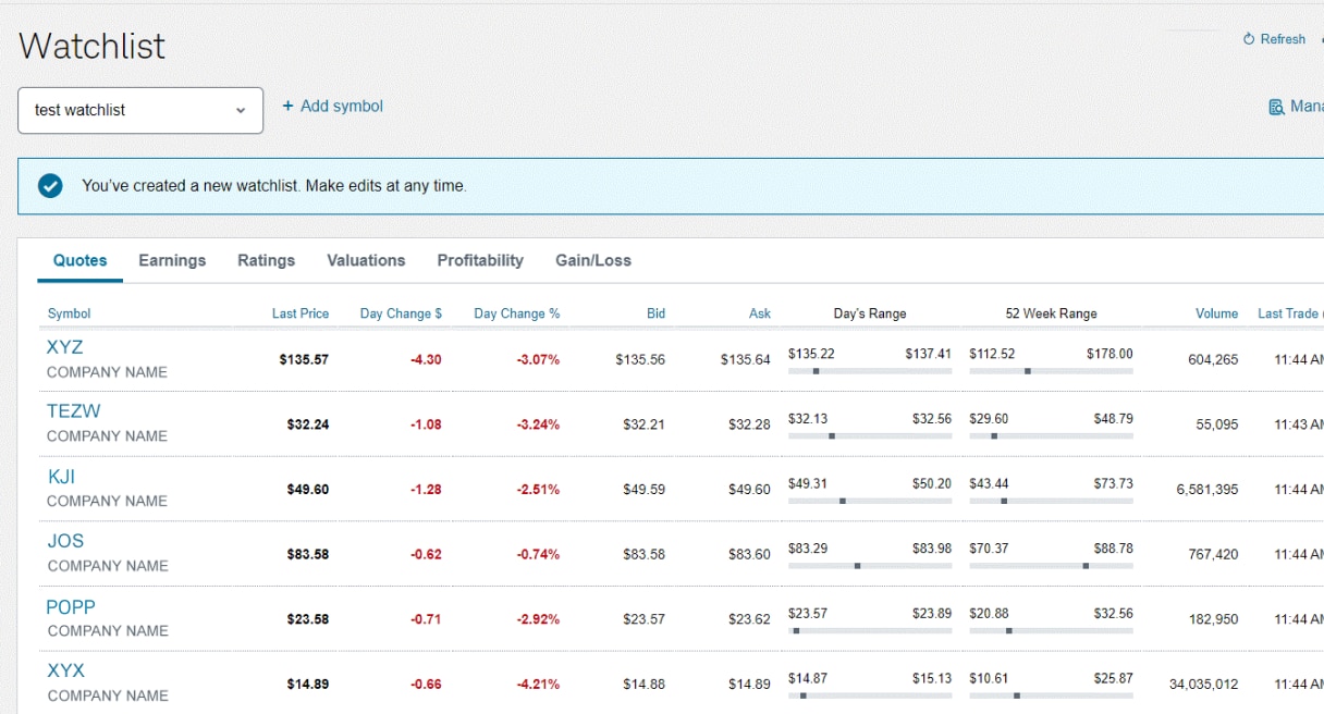 Create multiple custom watchlists to help you keep a close eye on important details and real-time market data for the securities in your portfolio or ones you are targeting.