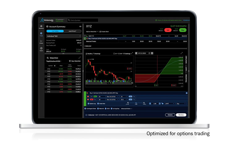 Whether you're making your first options trade or you're a veteran options trader, your positions are easy to read and analyze on thinkorswim web. You can place trades more quickly and intelligently, plus build an option spread right from the chain.