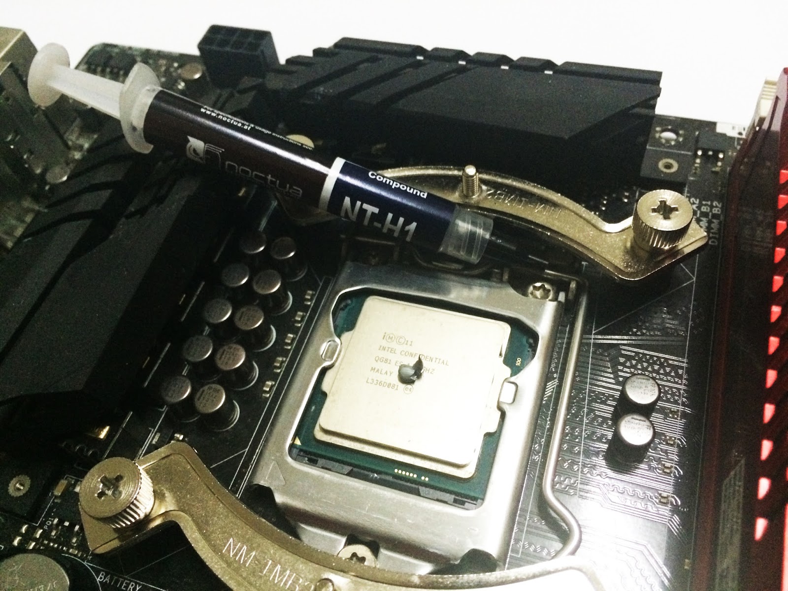 Always apply the thermal paste in a considerate amount, we don’t recommend to cover the whole CPU with thermal paste – here we’re using the rice grain method, that’ll be more than enough.