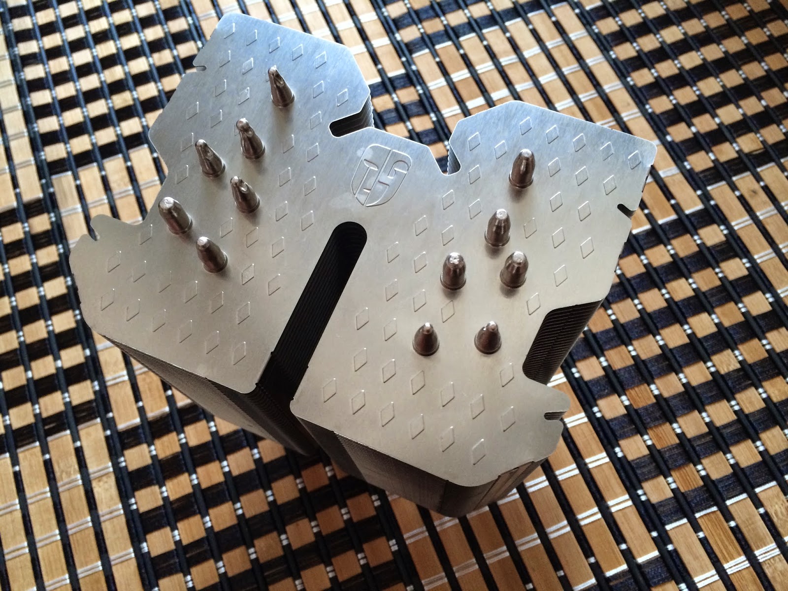 The fins towards the edges of the Lucifer are crimped. A total of six 6mm heatpipes bent in a u-shaped array through the fins of the Lucifer, from here you can see that the heatpipe configuration.