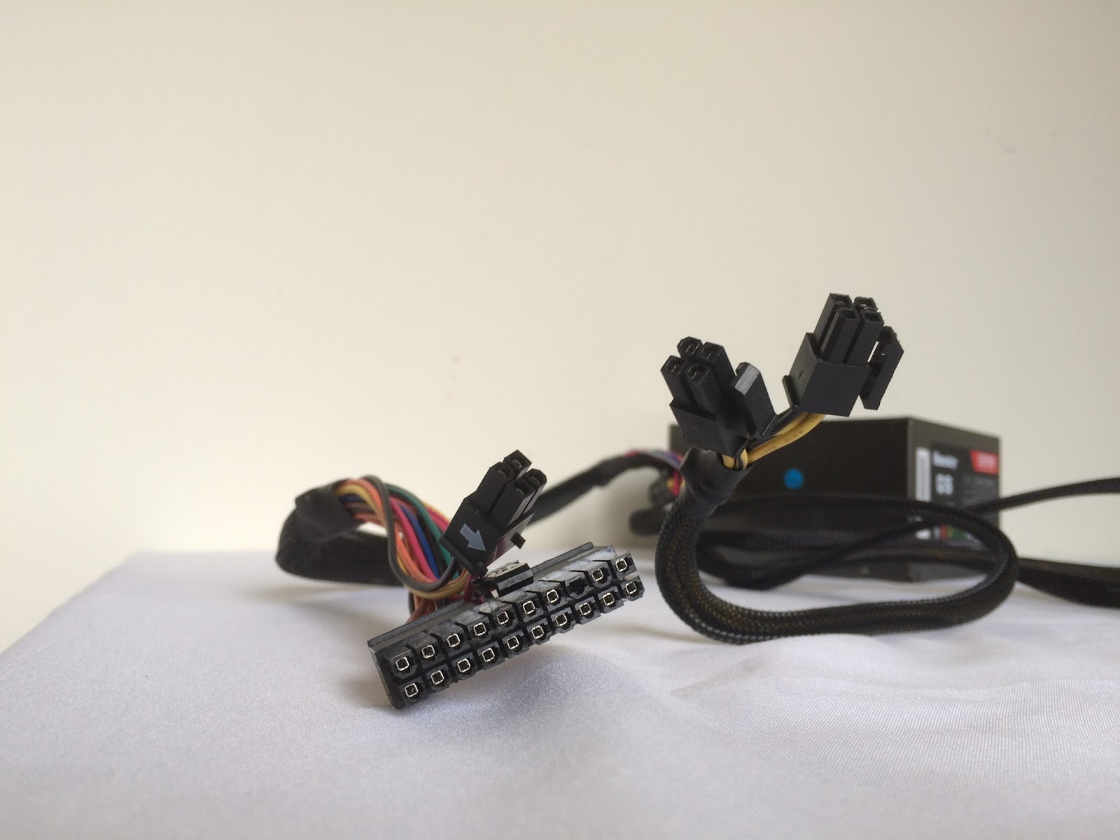 The connectors are your standard issues as the 20+4 pin and the 4+4 pin seen here. They are sleeved (somewhat) but you could still see the multi-colored cables.