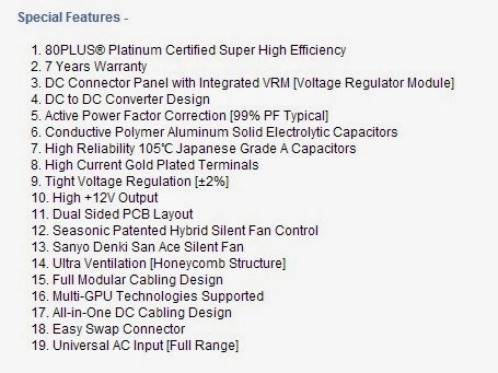 Special features of the P860 as listed by Seasonic; the 7-year warranty shows how confident they are with the PSU. This should outlast a number of builds or upgrades before it’ll give up the ghosts.