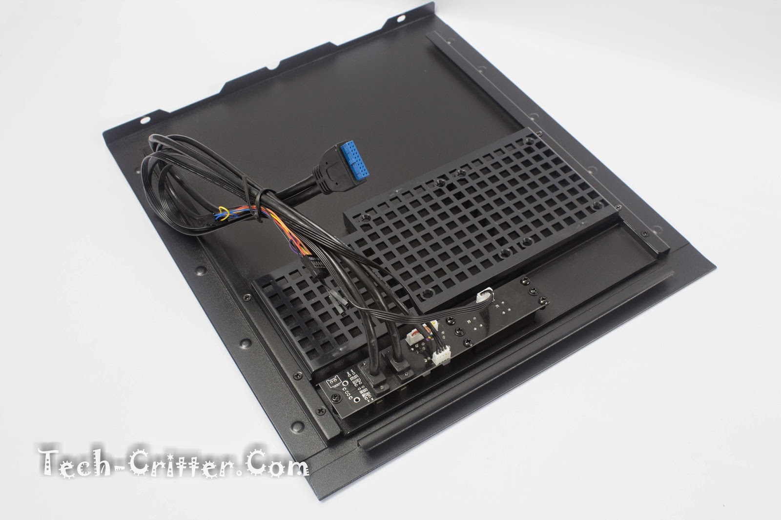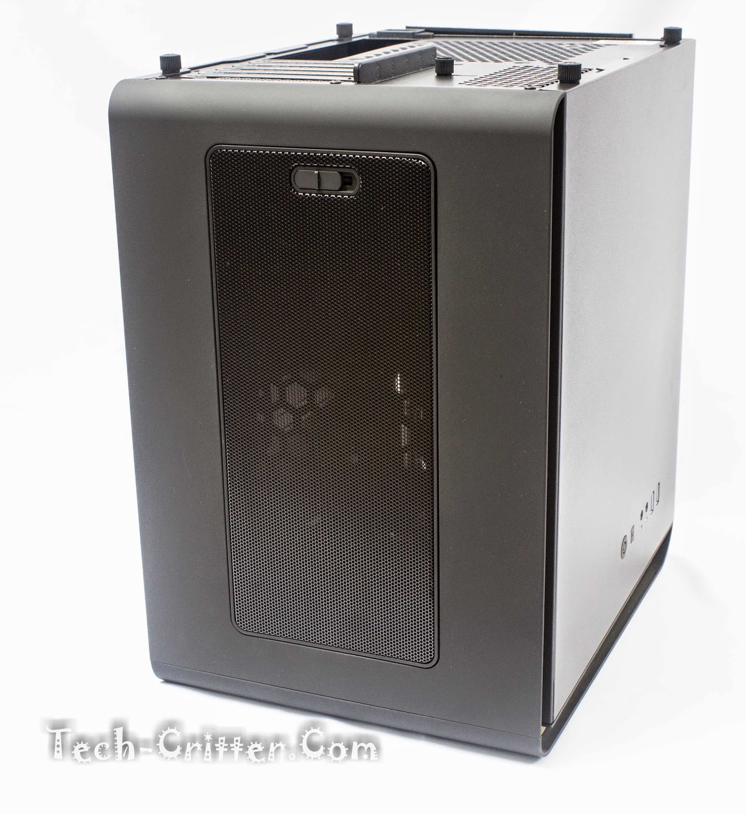 Which consists of a power button, reset button, power and hdd activity LEDs, microphone and headphome jack and a pair of USB3.0 ports. FYI, you can mount the panels on either side, giving you the flexibility to have them on the left or right side of the chassis.