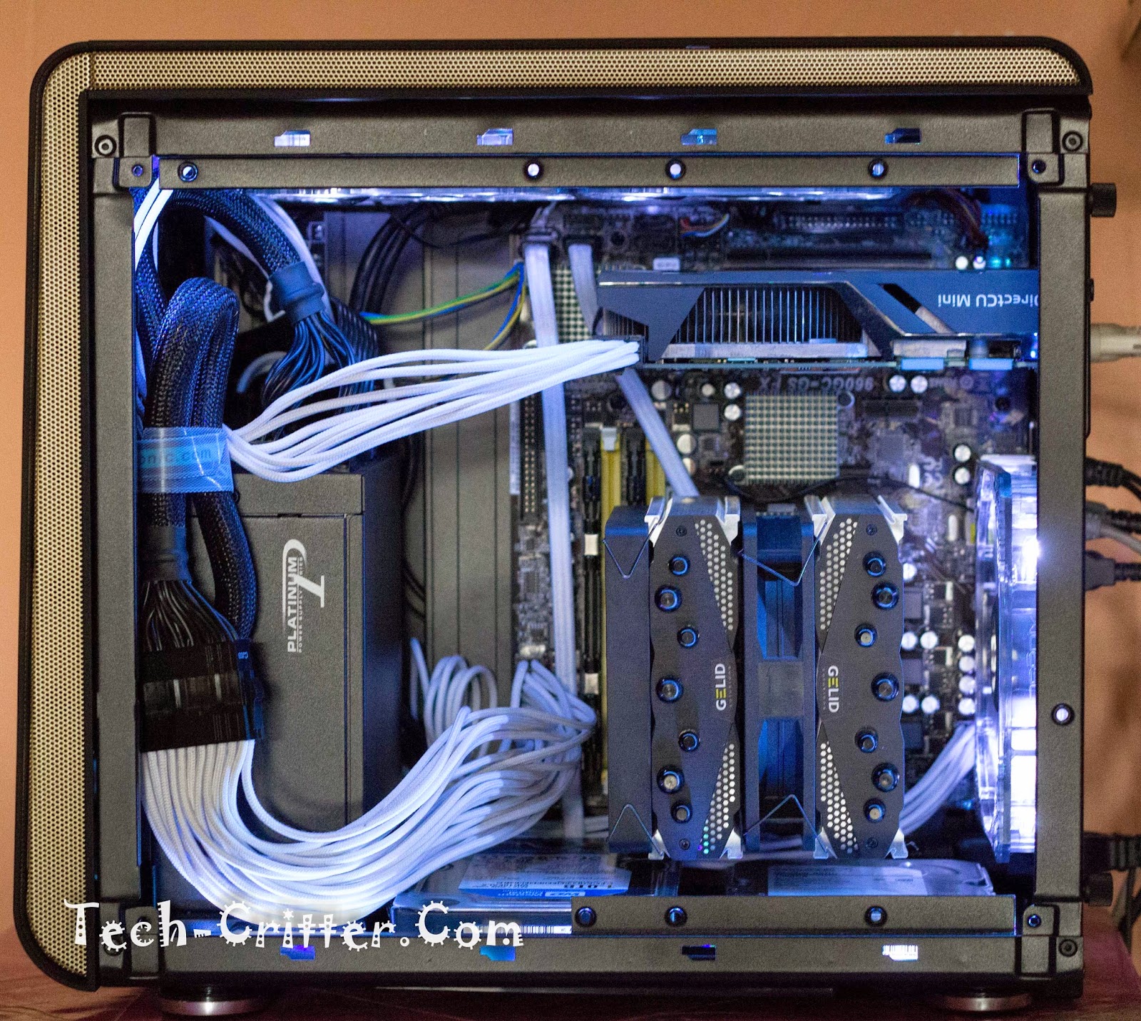 So at the end, we decided to use the Black Edition CPU cooler from Gelid Solutions that we reviewed a while back. Sure enough, everything fits nicely. Added the BitFenix Spectre Pro LED (White) fans with BitFenix Alchemy Cables and an LED lighting strip to spruce the build.