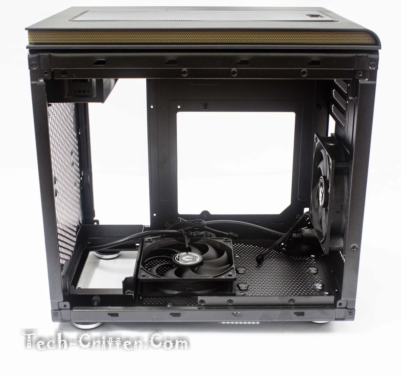 Which is easily removable, revealing mounts for dual 120mm fans. Possible for a 240mm radiator as well.