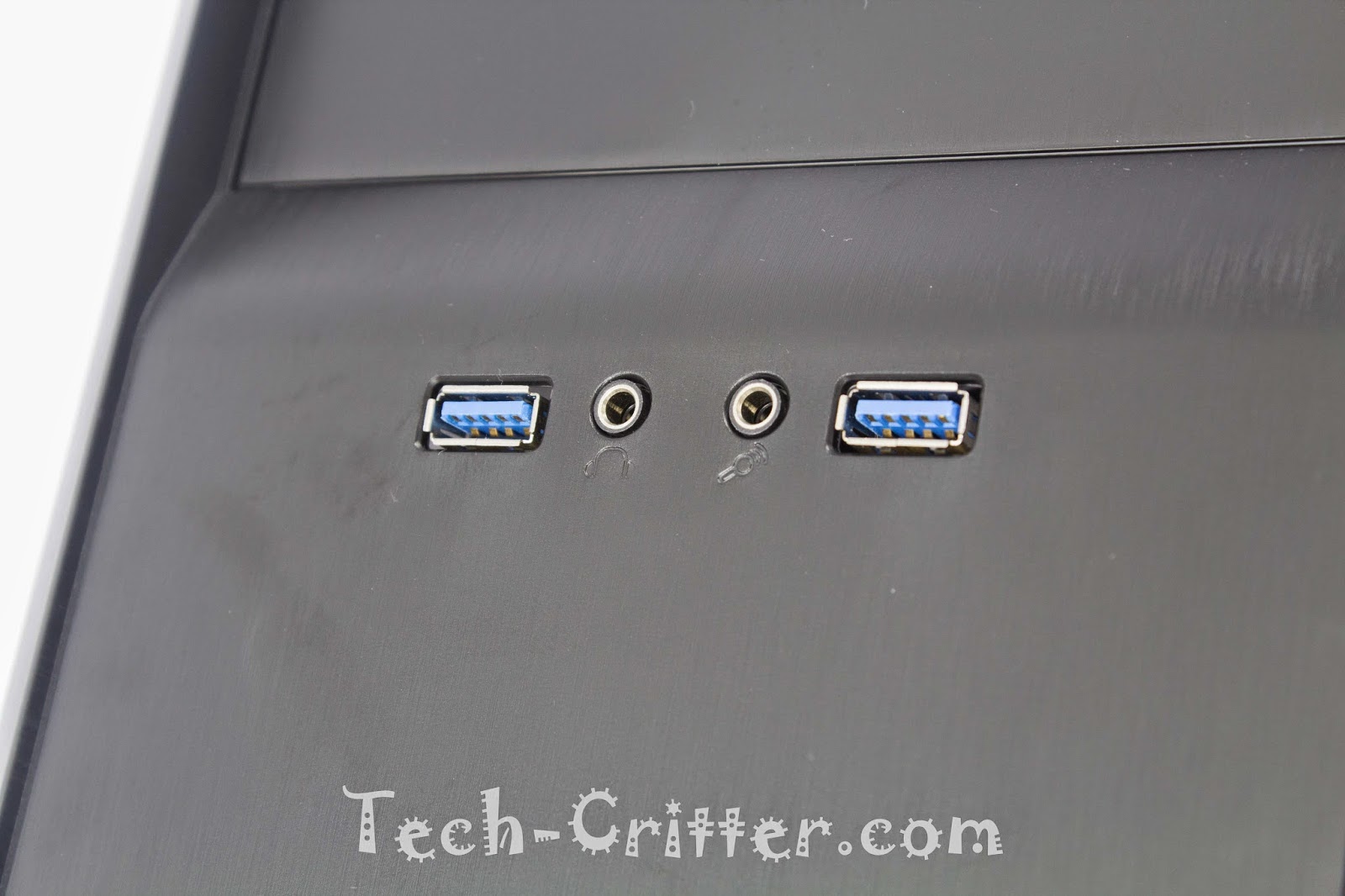Front panel I/O consists of two USB3.0 ports, a microphone and headphone jack.
