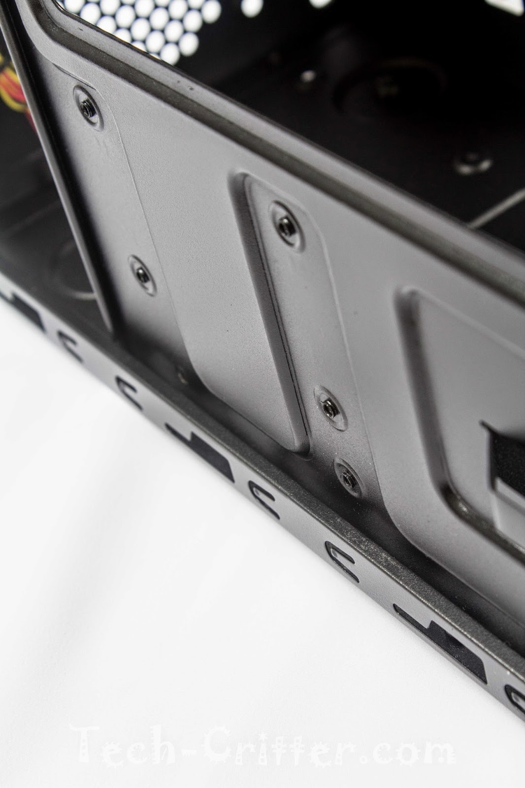 Note the large cut-out on the motherboard tray, this makes it easier to swap third party CPU coolers later on and rest assured that the motherboard tray is solid despite the big opening. The drive bays are void of any tool-less mounting mechanisms so best to get your screw drivers handy.
