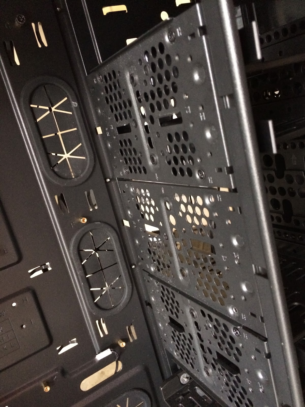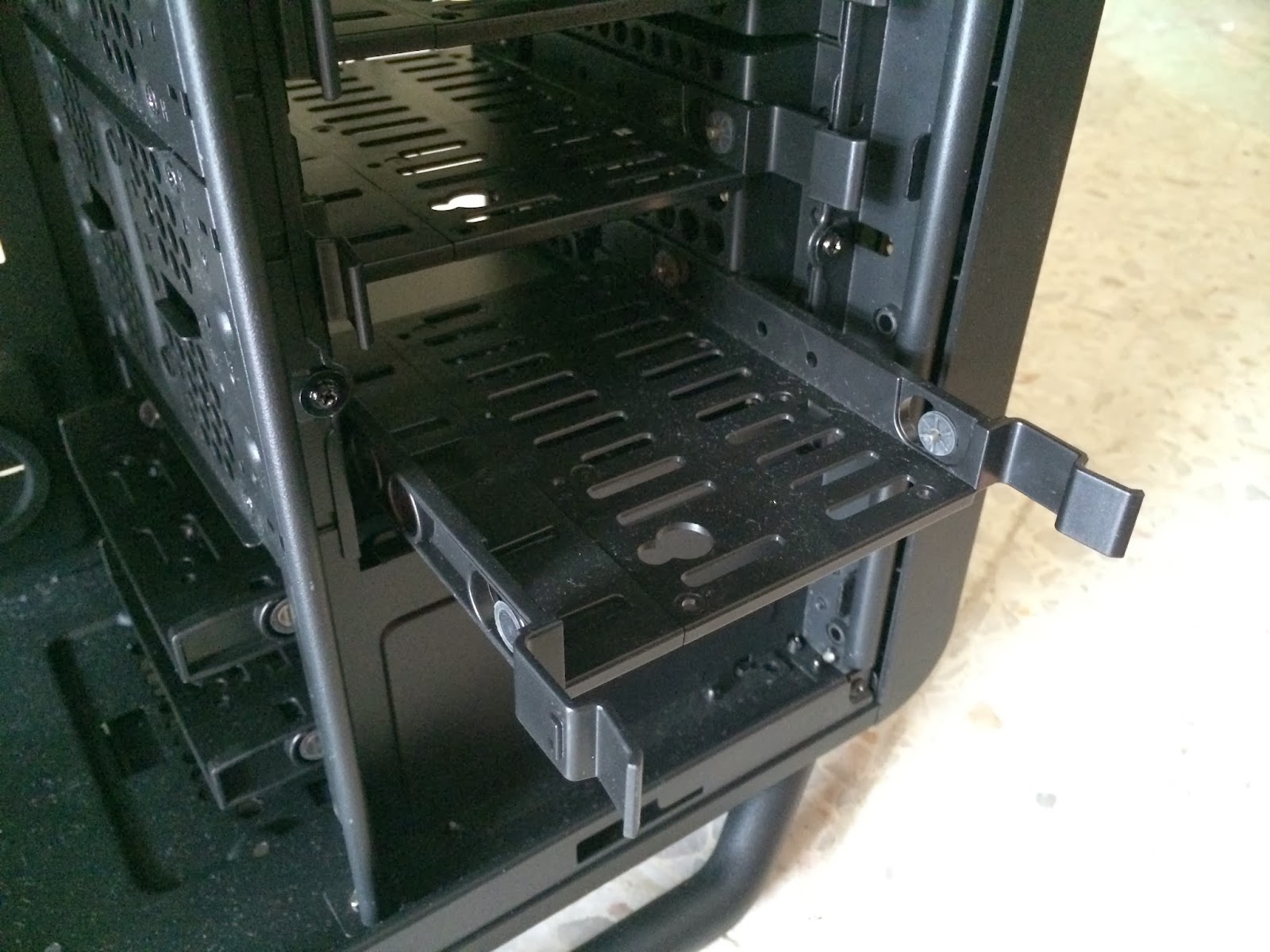 The hard drive cage is all held in place by screws that can be easily removed instead of rivets used in low budget PC chassis which requires some tools to remove and has to be done carefully.