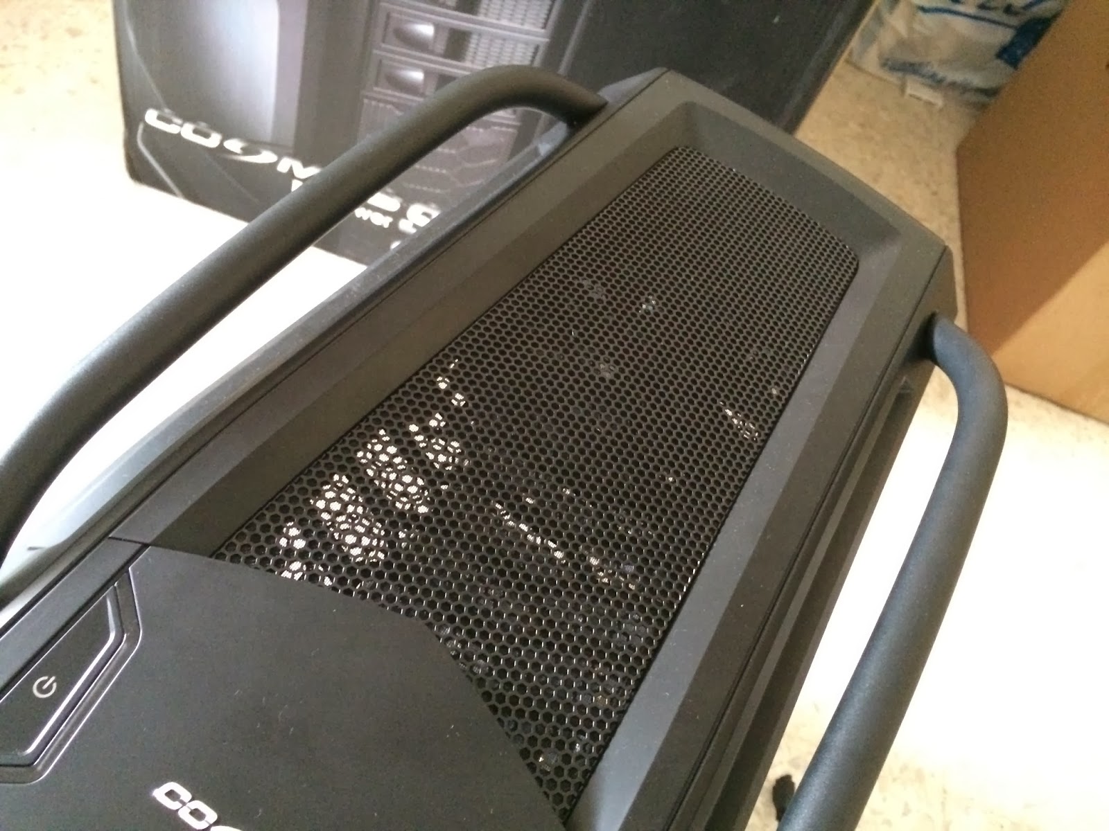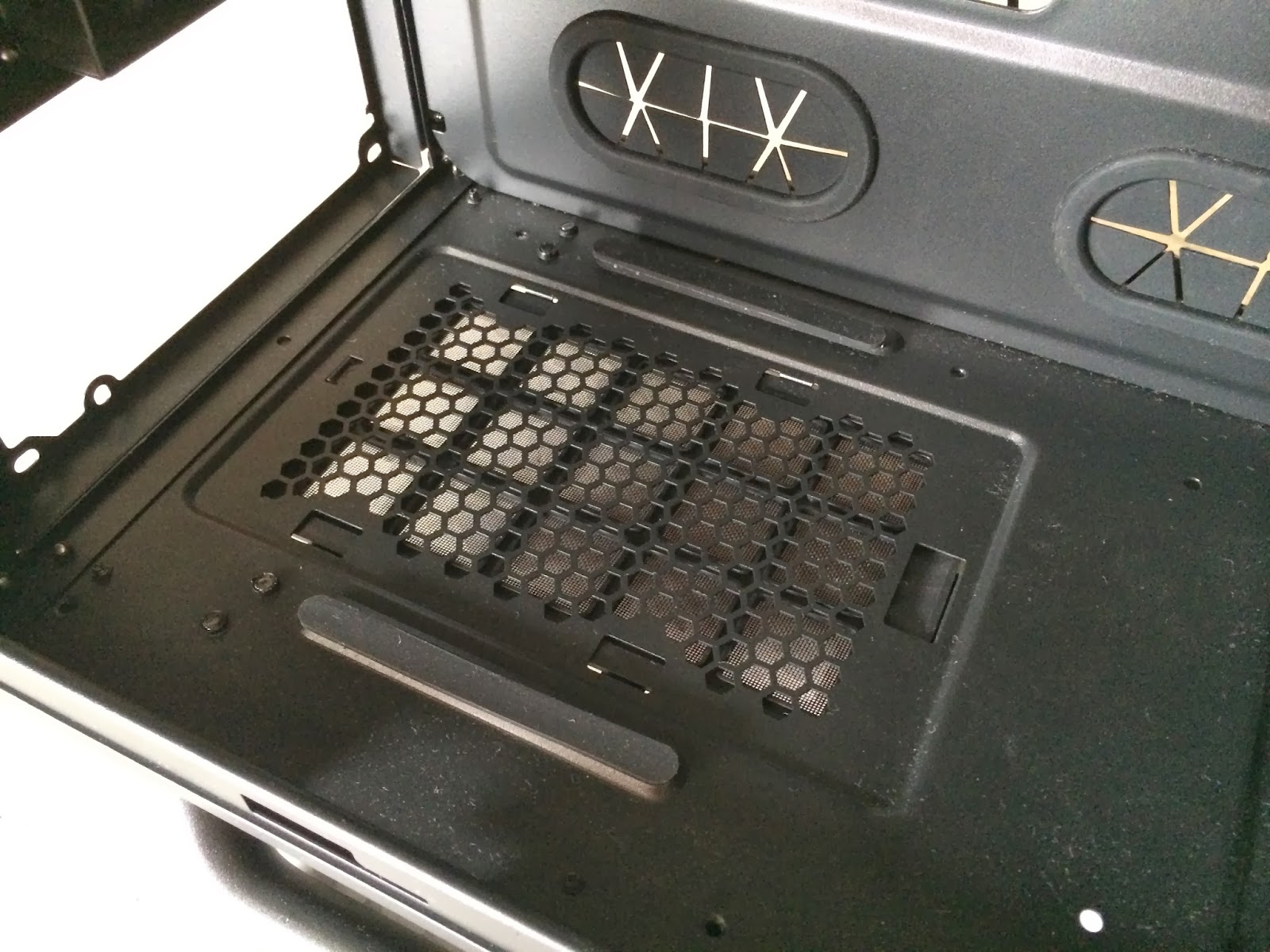 We’re now looking at the bottom of the Cosmos SE, the Cosmos series iconic curved metal bars that act as the case feet with rubber pads mounted as a cushion and two pieces of removable filters that helps letting fresh air in while keeping the dust out of your system.