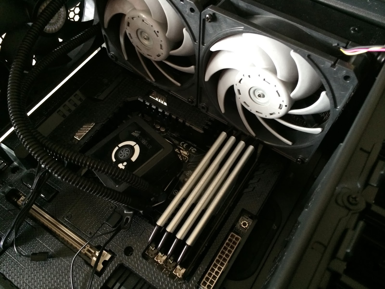 Even having a motherboard with thermal armor like the Sabertooth Z87 from Asus, there’s no issue mounting a H100 in the Cosmos SE.
