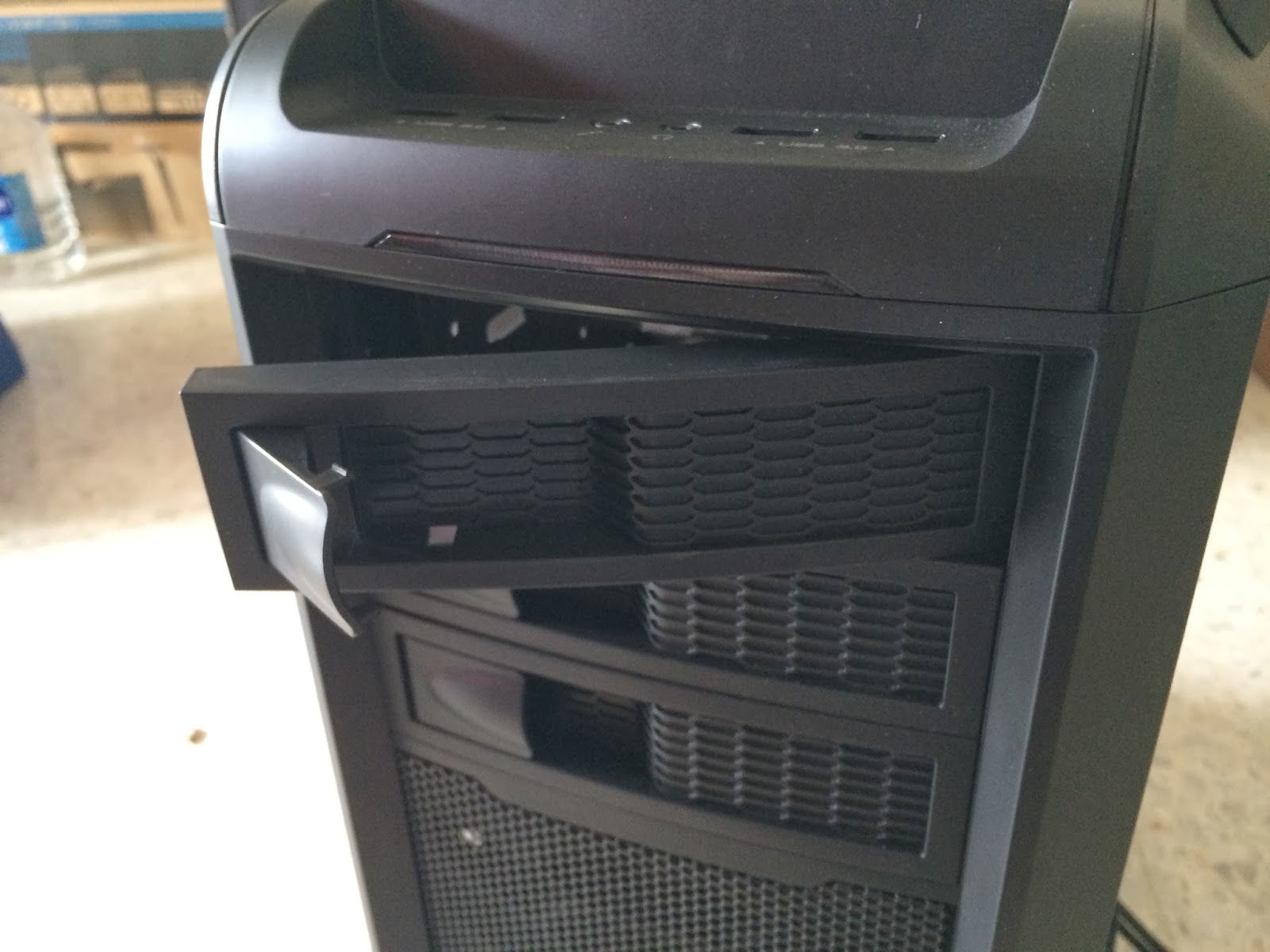 To support long cards like the Asus GTX 680 which takes up 3 expansion slot, you will have to remove 2 of the metal pieces which equals to removing 4 caddies out from your system. It won’t hurt much if you planned to have only one hard drive with one SSD in the first place.