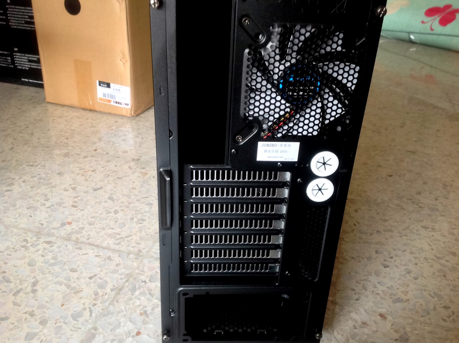 We can see 2 pieces of rubber grommets at the back of the QT01 where you can install external radiator for water cooling, but doing so defeats the purpose of QT01 being a silent chassis as the noise dampening material will not be able to suppress noise generated outside of the QT01.