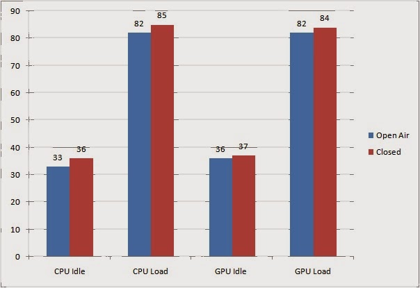 From the graph and table shown above, the difference in temperature is not that much. The rise in temperature is expected as the only air intake when the side panel is closed would only be the front panel and minimal air front the bottom mesh structure in front of the power supply. Nothing much to complain about the temperature, but the noise level different is something worth notice:
