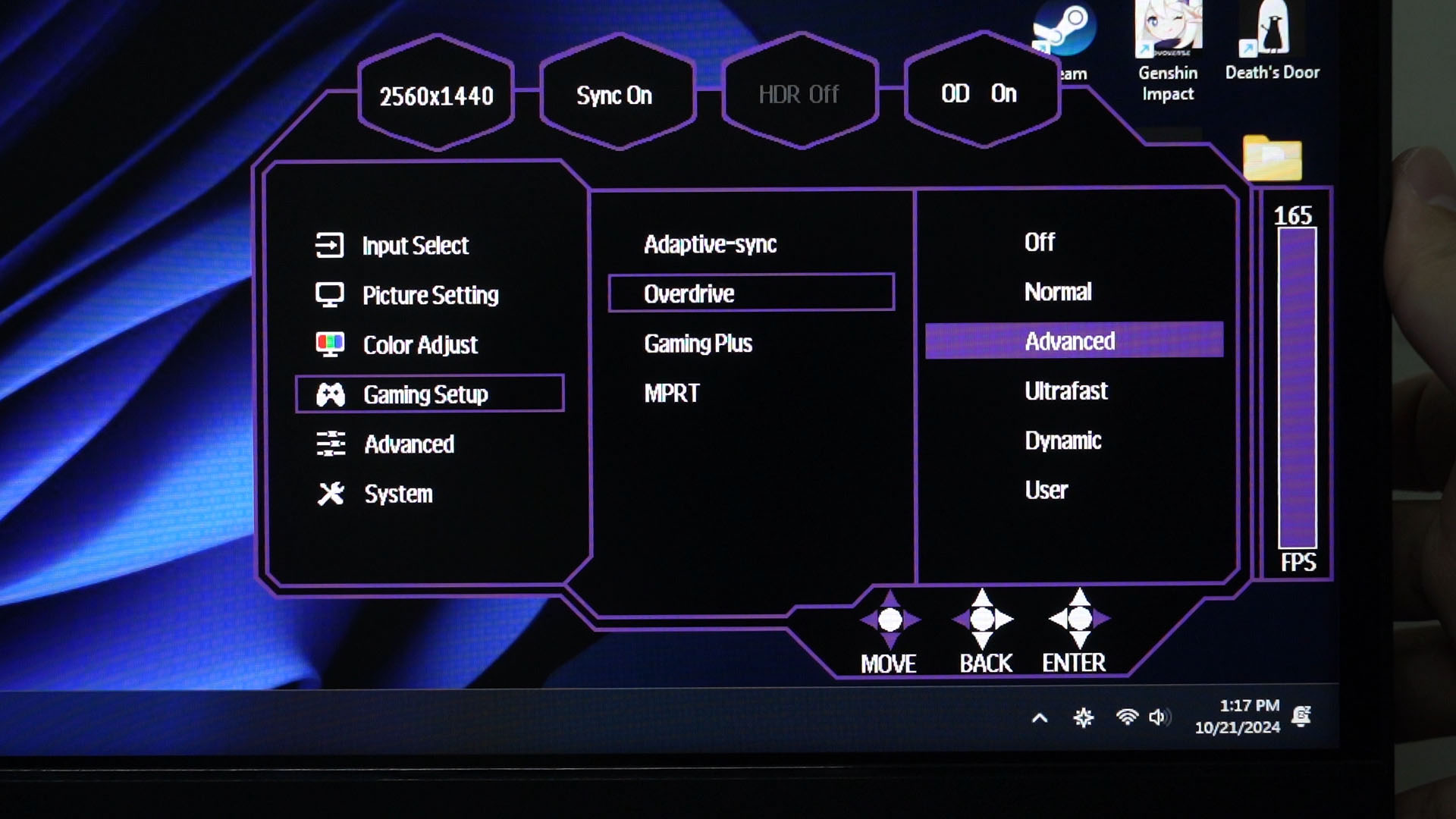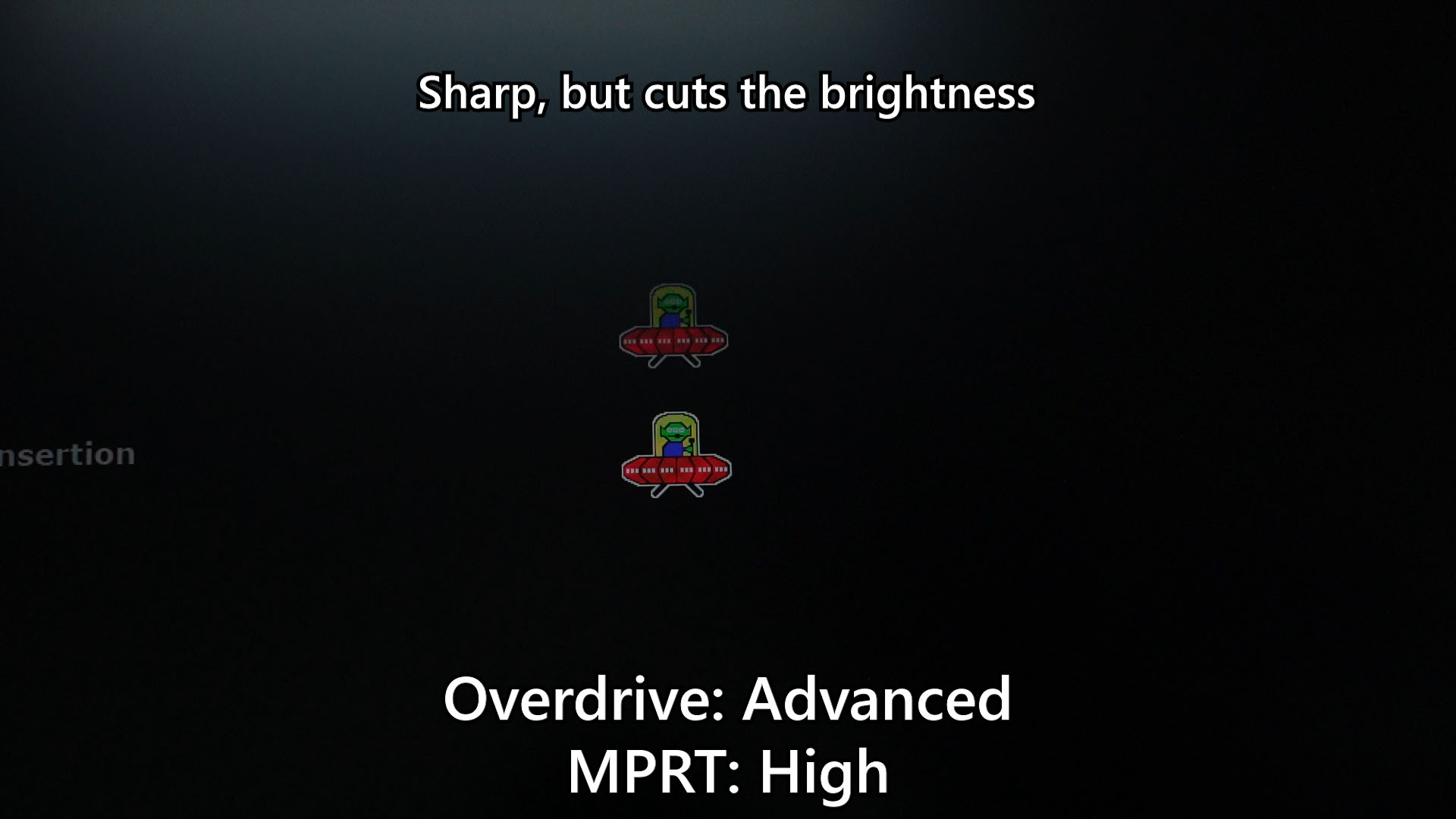 The pixel response time is a weird one, though. You see, there is an option for overdrive and there are multiple levels to select from. If we just disable or turn it up to the max level, the UFOs look the same to my eyes.