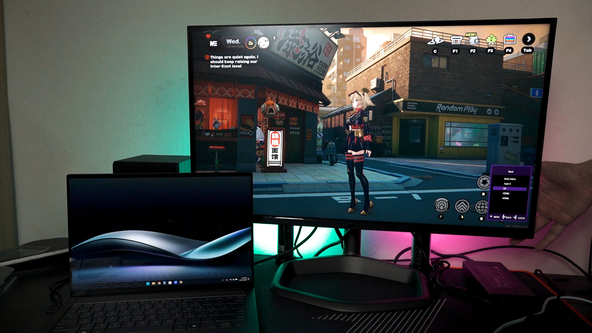 We can connect just one single cable from the monitor to a laptop or ROG Ally or whatever, and we can “transfer” all the connected USB devices to the laptop, including display and 90W of USB-PD charging as well. That means, one cable to handle everything. If we have any audio devices connected via the 3.5mm audio jack, it’ll transfer over as well – and that’s great. I didn’t expect this monitor to have KVM functionality.