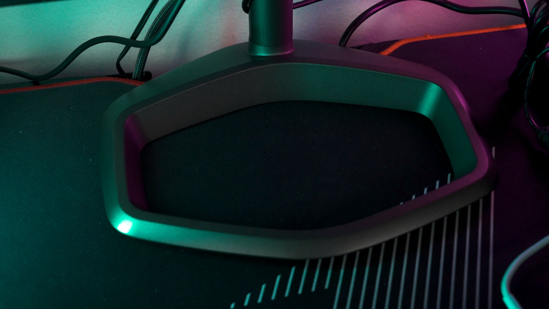 I’m not really a fan of the base of the monitor stand as it kinda wastes a lot of space. I mean, it’s a good spot for a laptop if we’re using the KVM feature – but otherwise, kinda wasted.