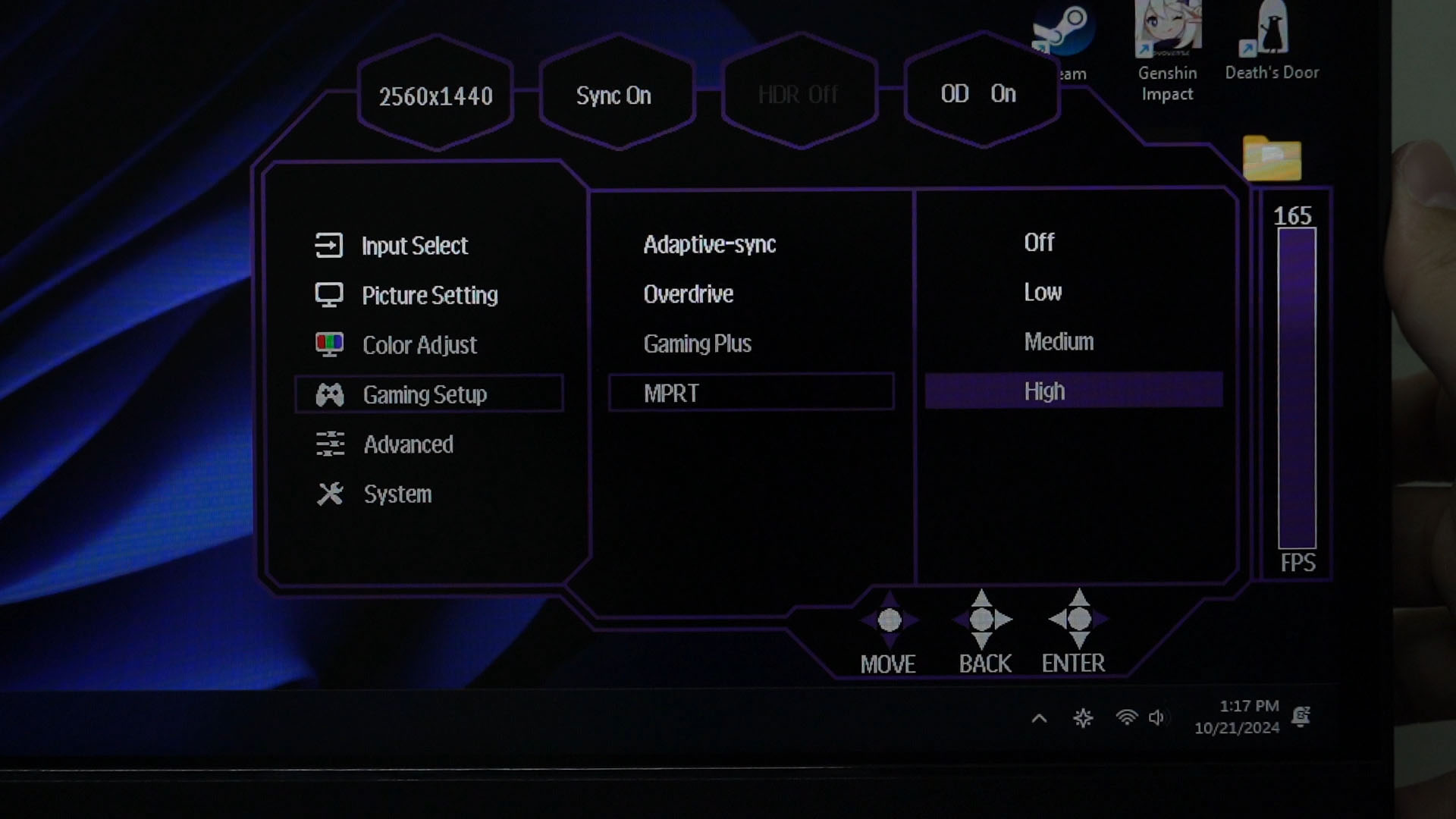 Then there’s also the option to enable MPRT. It’s another name for black frame insertion which mitigates motion blur due to pixel response time – but also cuts the maximum brightness in half. Again, the difference is not noticeable to me – so I leave this disabled.