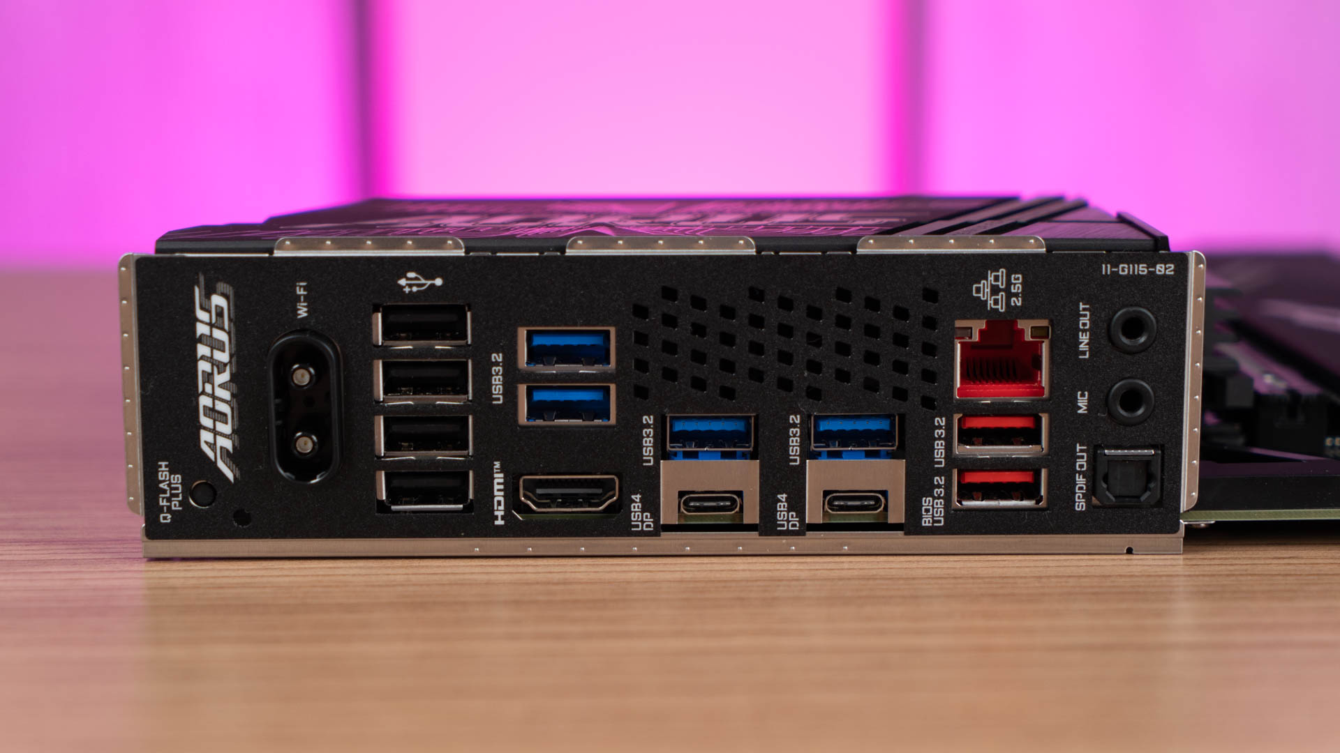 While the layout is slightly different from what we saw on the X870E AORUS ELITE WIFI7, the connectors and ports are identical. Connectivity options include 2.5G Ethernet and WiFi 7, offering stable and rapid networking capabilities. For users needing quick data transfers, the motherboard includes USB 3.2 Gen 2×2 Type-C ports. Audio enthusiasts benefit from the Realtek ALC1220 codec, delivering high-quality audio output and an optical port for premium sound configurations. Additional practical features like BIOS Flashback, simplifying firmware updates, and the Clear CMOS button for easy resets, further enhance the user experience.