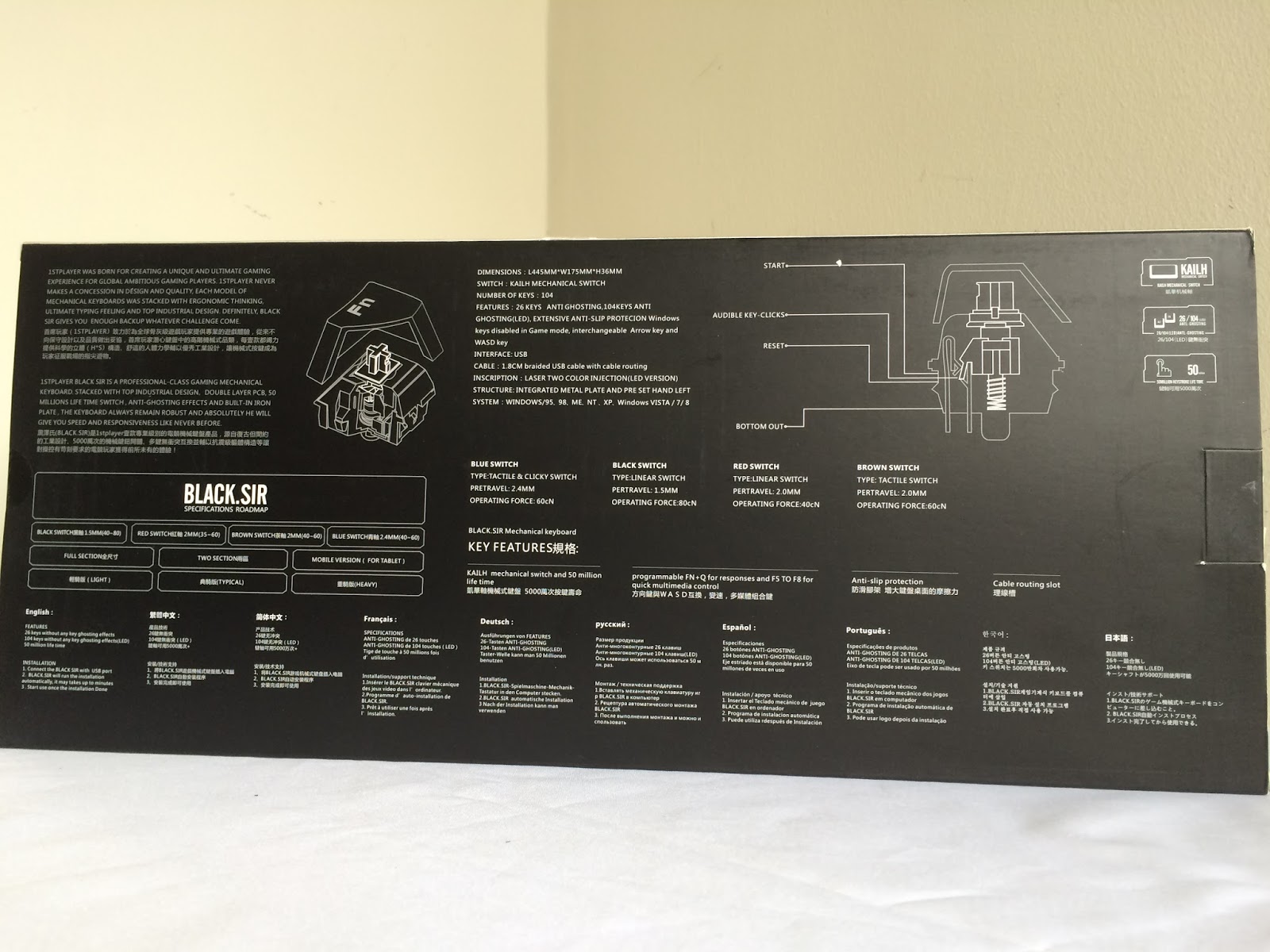 At the back of the box, you’ll find a brief description of the history of 1st Player, as well as the feature of the Kailh switch available for this model.