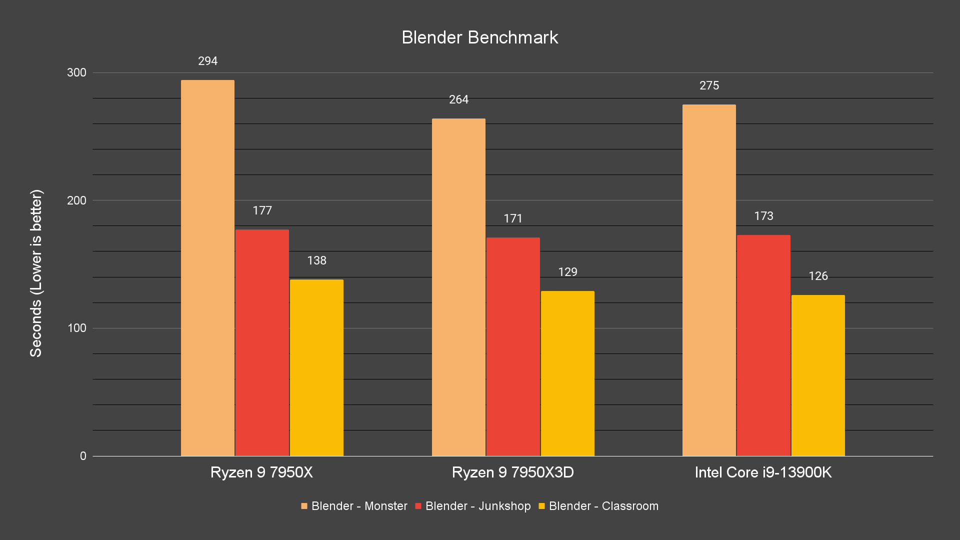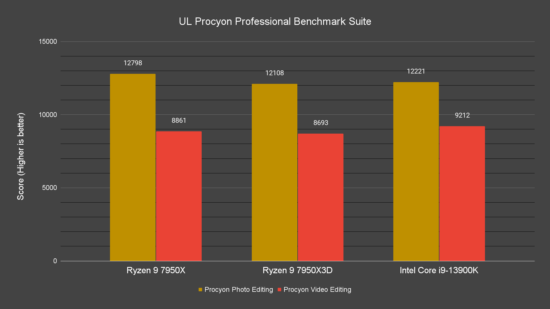 And for benchmarks that are related to creative works i.e Blender, Cinebench R23, Corona Renderer, V-Ray, and Procyon, the 7950X3D stays between the 13900K and 7950X most of the time. As overclocking is limited on the 7950X and the highest power draw observed is only at about 150W, its multicore intensive performance falls behind the 7950X and 13900K on quite a number of occasions even though the single-core performance is actually pretty much on par with the 7950X.