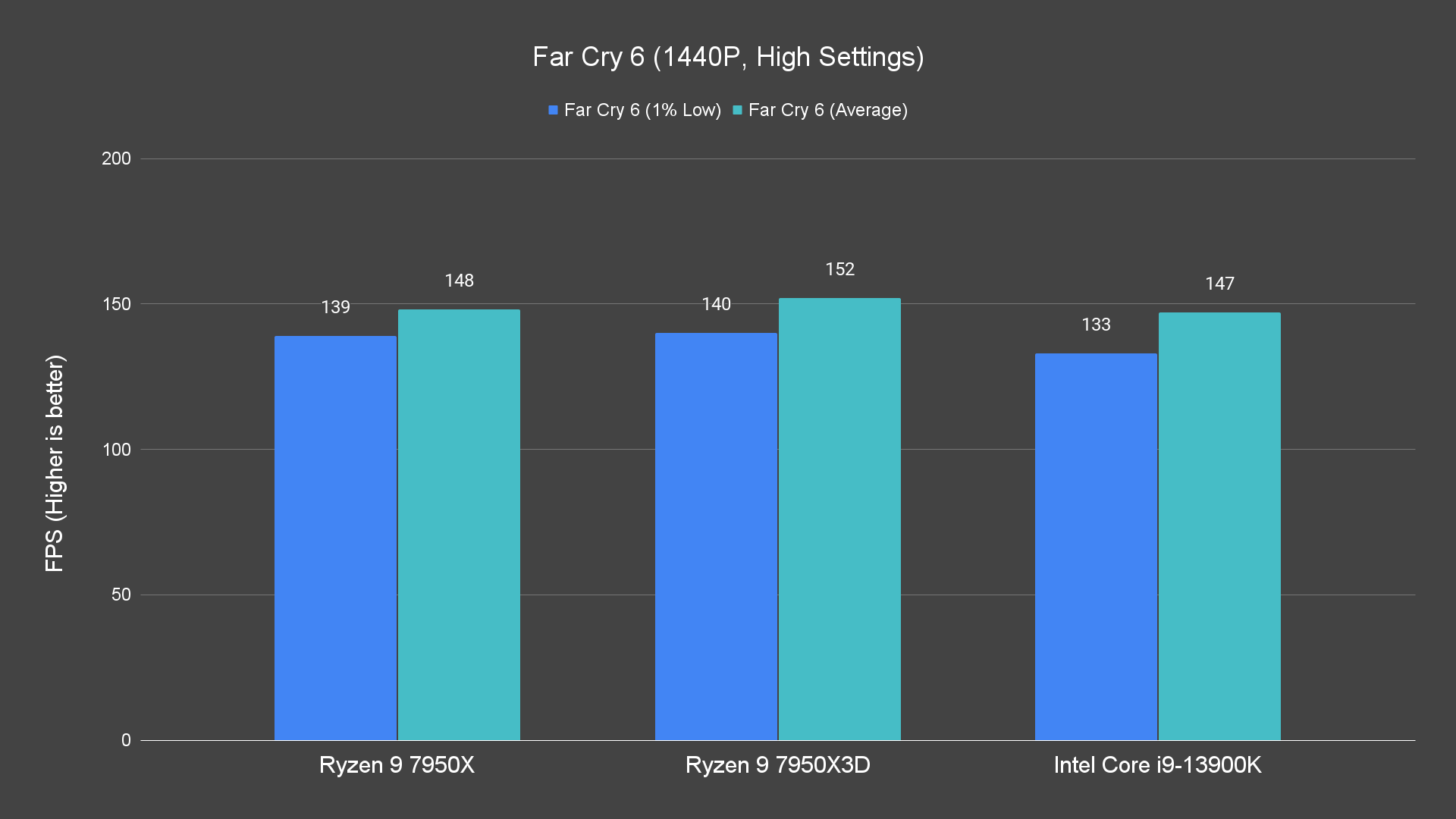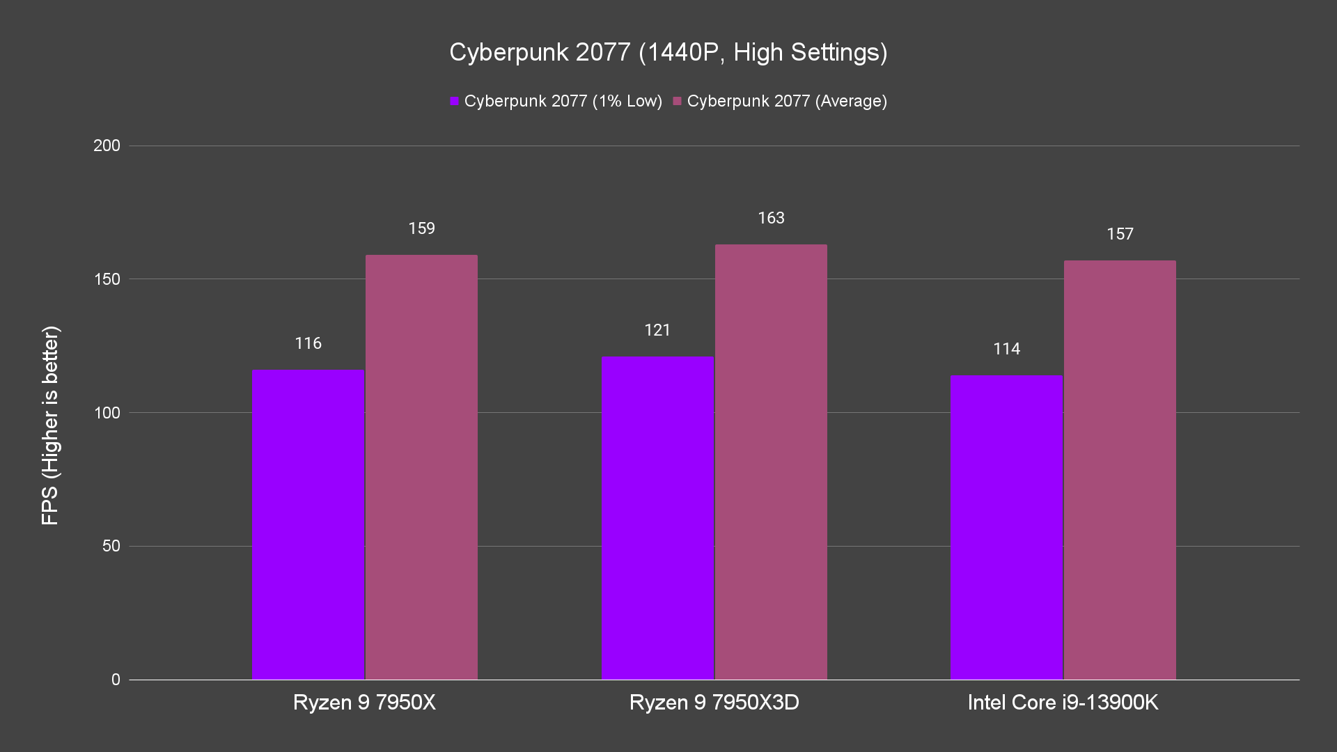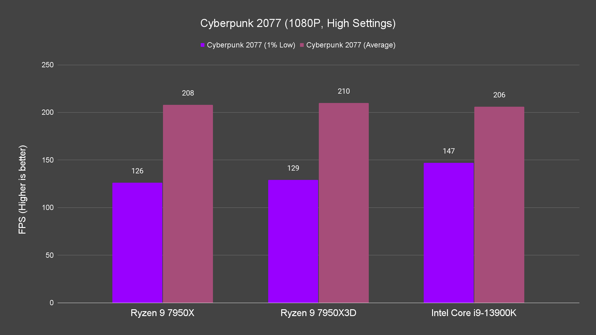 Moving on to the actual game test, just how much performance gain you can get with that 144MB worth of L3 cache? The performance difference is noticeable on 1080P and 1440P resolutions, not only for the average frames but also the 1% low, which is not bad. For the games that we have tested, it’s doing better than both the 7950X and 13900K most of the time. Not exactly great I’d say but the performance improvement is definitely there. There are, of course, games that don’t really benefit at all from the extra L3 cache the 7950X3D has to offer, but for games that can take advantage of that, the 1% low frames are definitely higher.