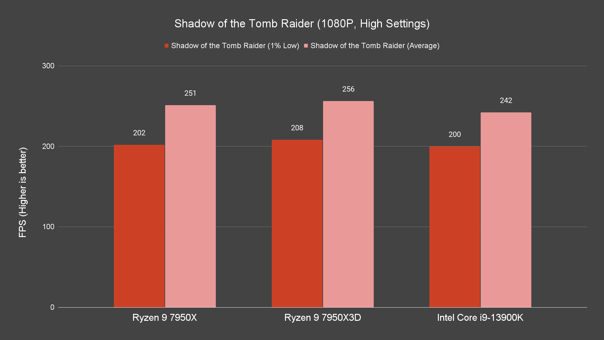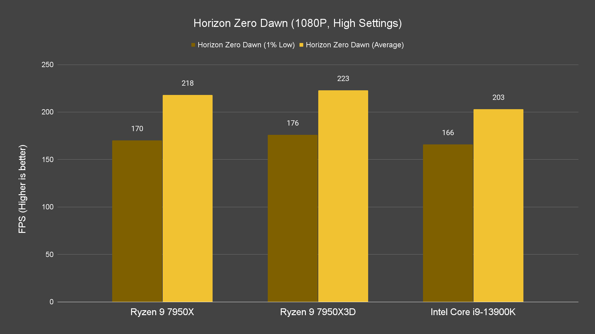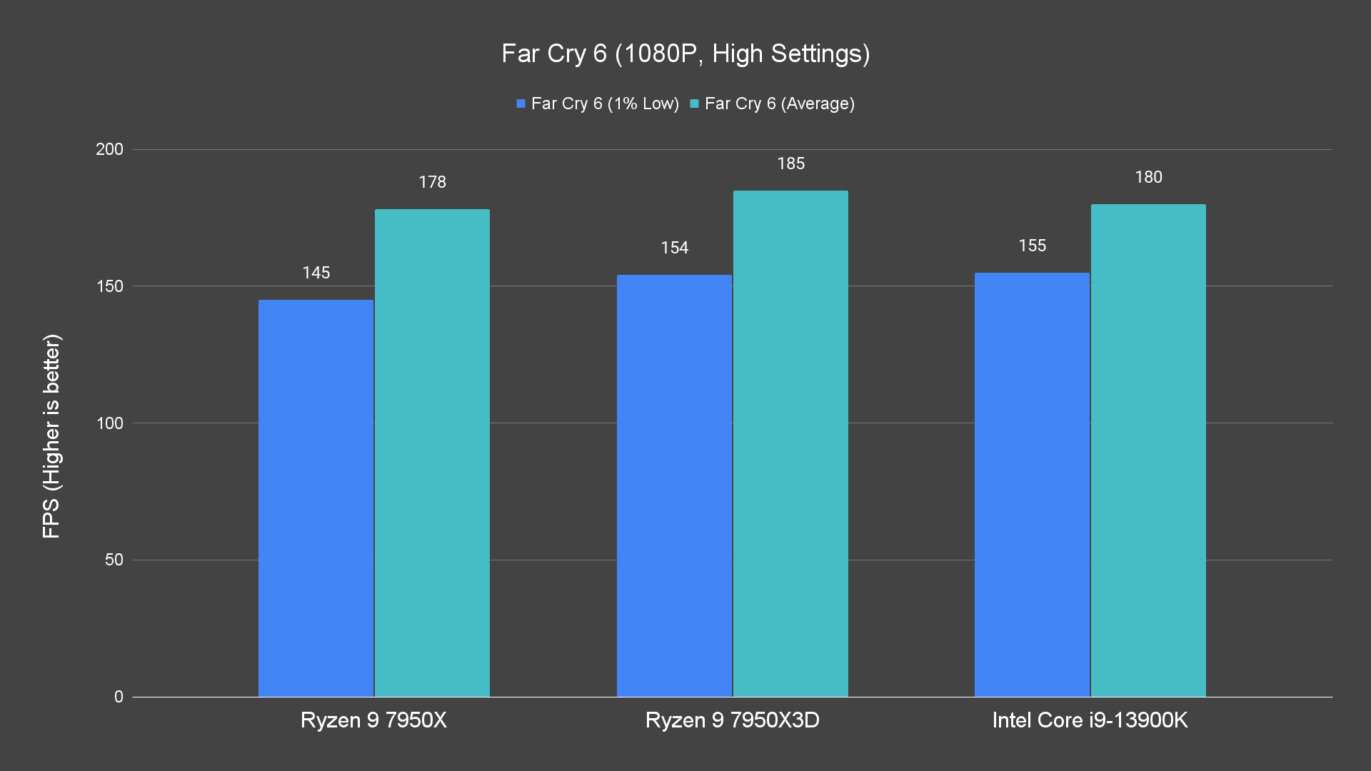 Moving on to the actual game test, just how much performance gain you can get with that 144MB worth of L3 cache? The performance difference is noticeable on 1080P and 1440P resolutions, not only for the average frames but also the 1% low, which is not bad. For the games that we have tested, it’s doing better than both the 7950X and 13900K most of the time. Not exactly great I’d say but the performance improvement is definitely there. There are, of course, games that don’t really benefit at all from the extra L3 cache the 7950X3D has to offer, but for games that can take advantage of that, the 1% low frames are definitely higher.