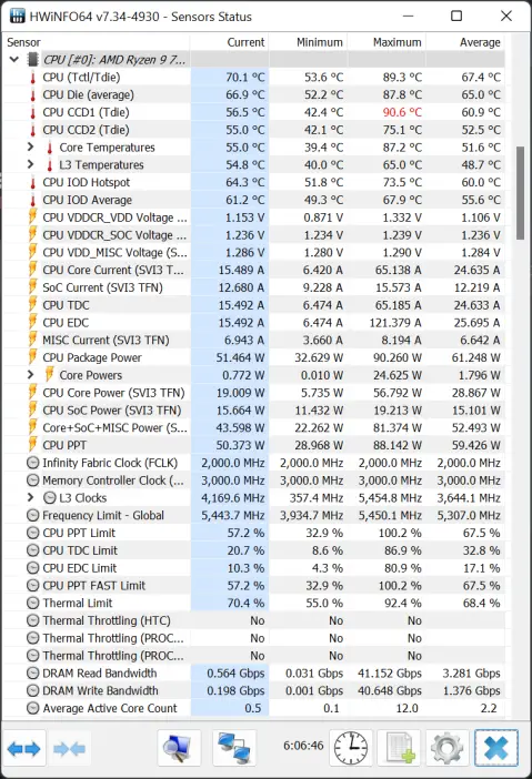 Power draw and load temperature have increased since we enabled the performance preset but it’s still under 90°C and switching to better cooling solutions like a custom water-cooling setup or a better performing AIO liquid cooler is recommended if you’re looking to squeeze even more performance out of the Ryzen 9 7900.