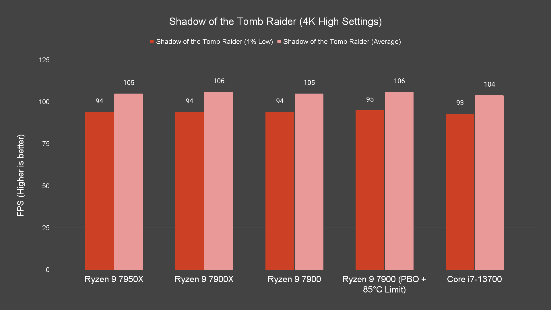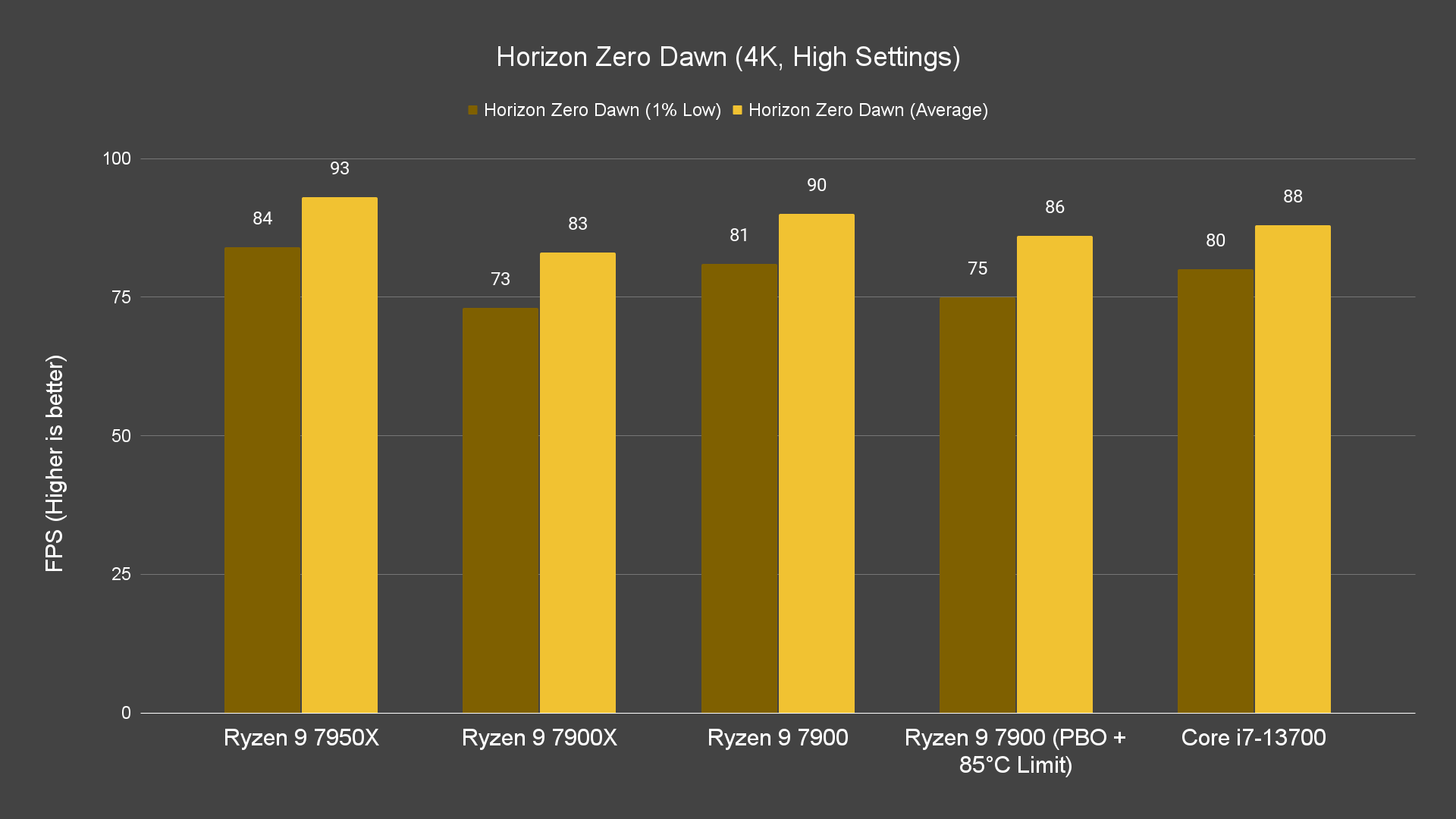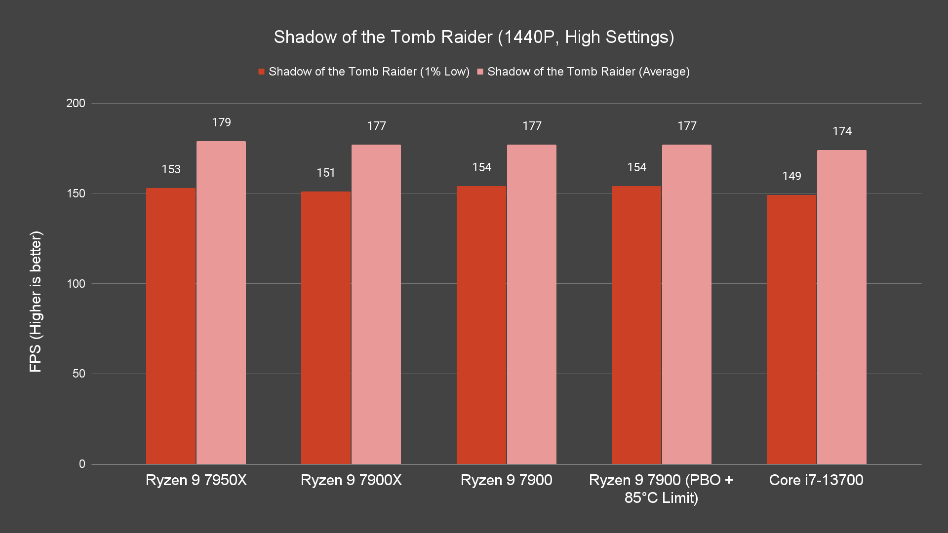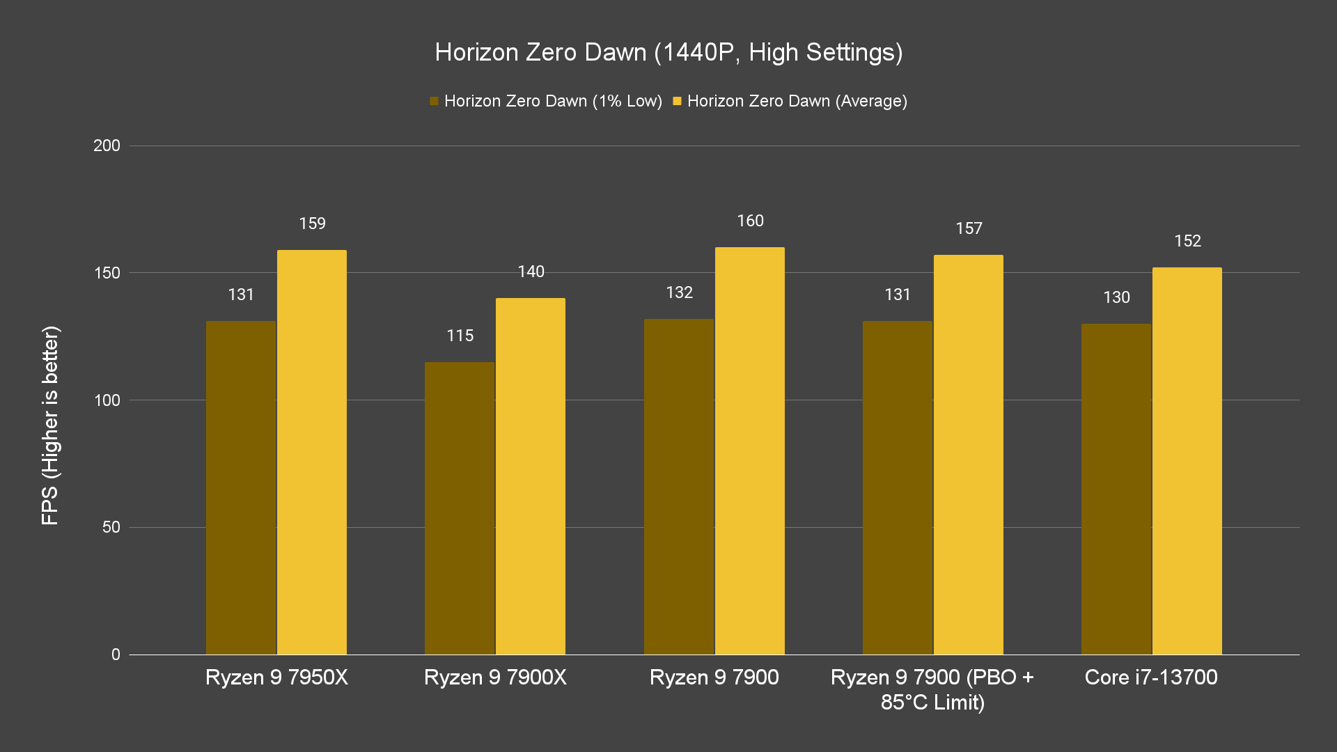Starting off with games benchmark, we’re actually impressed by just how well the Ryzen 9 7900 can actually perform, given that we’re running it on a Wraith Prism. Even without PBO enabled, it can perform just as well as the Ryzen 9 7900X across all resolutions on certain titles on stock settings, and enabling PBO will give you a bit more boost on the frames depending on the titles. The best thing about this is that this behavior can be seen not only on 1080p resolution but on both 1440P and 4K resolution as well.