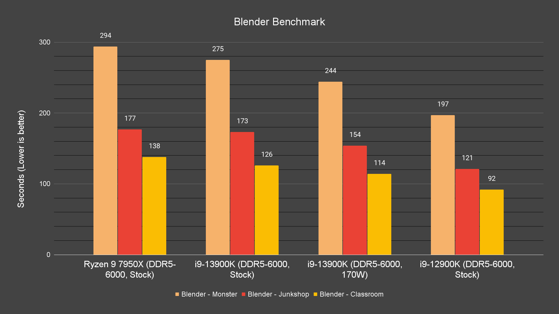 - The performance difference between the 3 processors and even setting the Core i9-13900K to 170W power limit will not affect performance much. More like within the margin of error, actually.