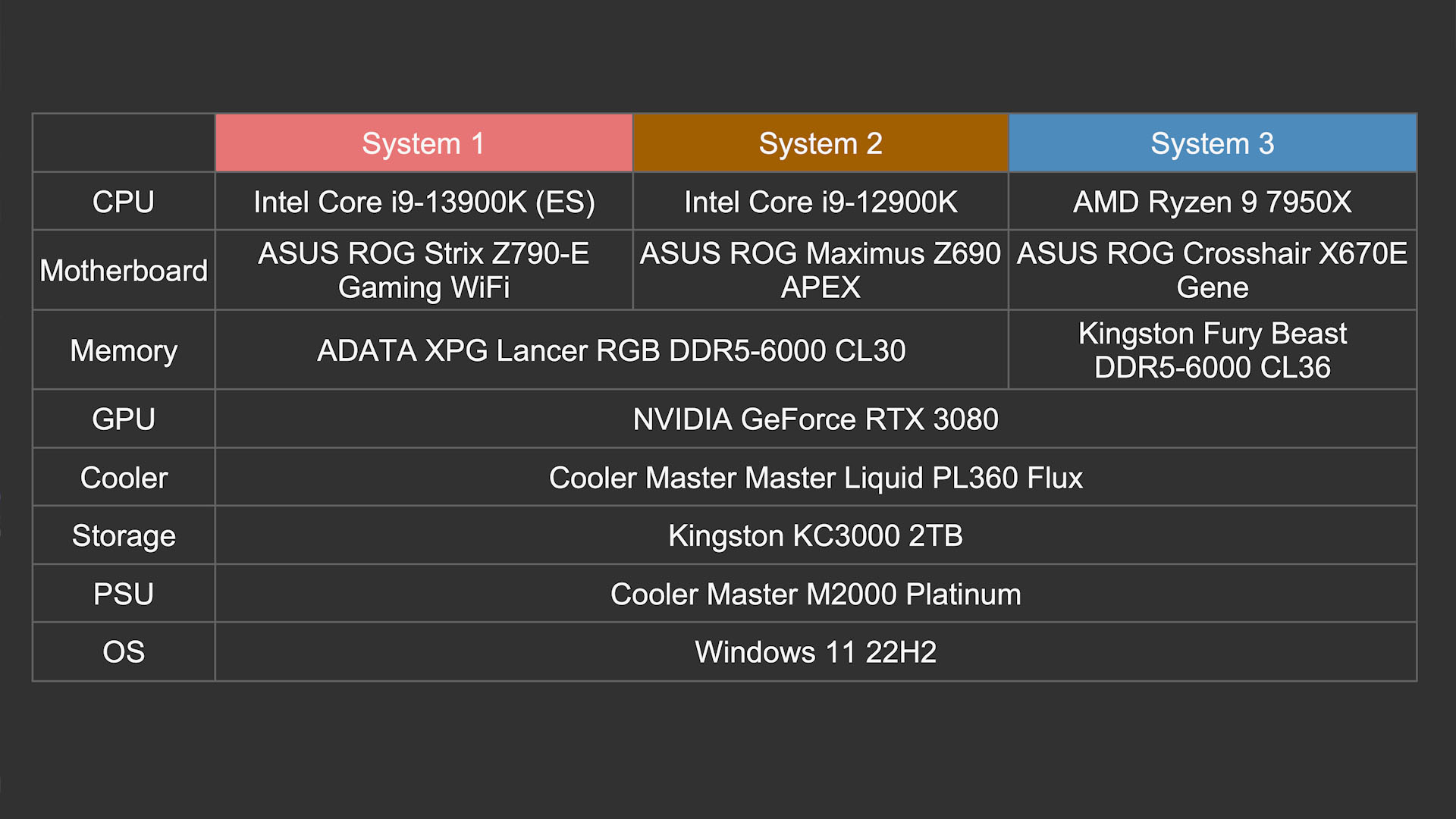 What we’re going to do is to compare the new Intel Core i9-13900K with last year’s Intel Core i9-12900K and also the Ryzen 9 7950X that was announced about a month ago.