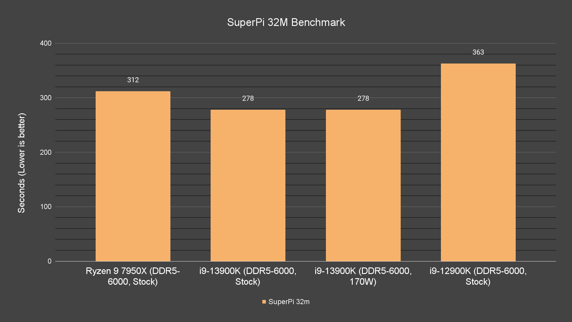 And just out of curiosity, we tested the Core i9-13900K stock with the absolute power limit set to 170W just to see how much performance we will lose. This is not an arbitrary number. We picked 170W because that is the rated default TDP of the AMD Ryzen 9 7950X. We’ll revisit this later as well.
