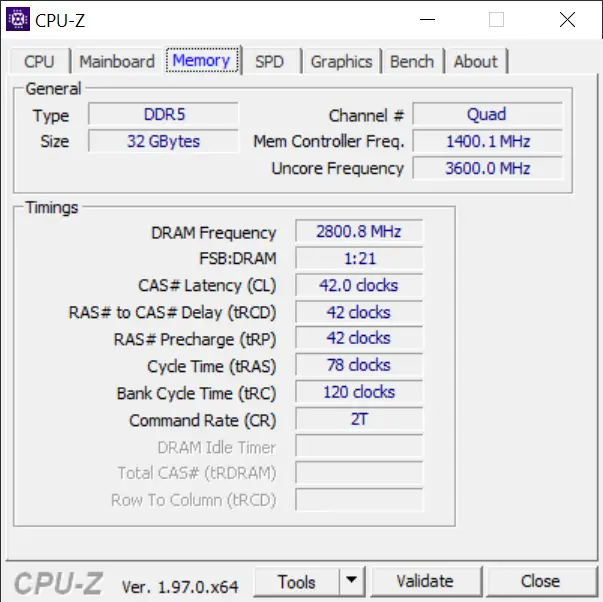 After several attempts on higher clocks, we only managed to achieve DDR5-5600 CL42 on the ADATA DDR5-4800 kit and using a slightly higher voltage on the memory controller (1.38), system agent (1.26V), and DRAM (1.38V). Your mileage may vary with different memory kits of course, as there are still other memory kits with Hynix and Samsung ICs which we have yet to get our hands on.