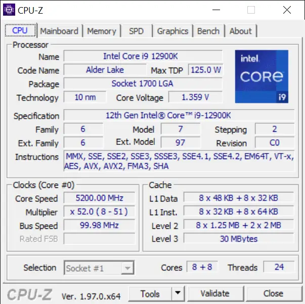 | CPU | Intel Core i9-12900K |
