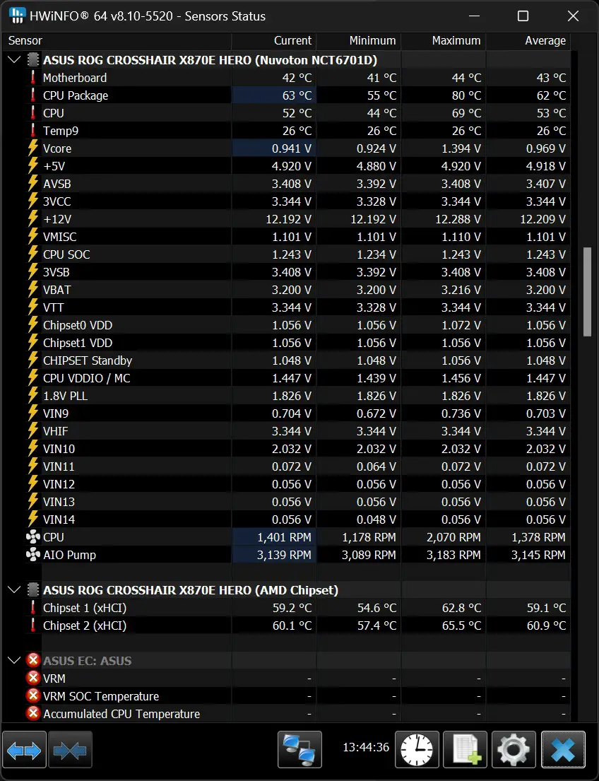 However, we did notice that HWinfo64 is unable to read the temperature data from the VRM sensors and we’re seeing some abnormal temperature data during our test, but this a known issue for HWinfo64 on some ASUS motherboards, and the X870E Hero is no exception. We can only wait for the developers at HWinfo64 to fix that in the near future.