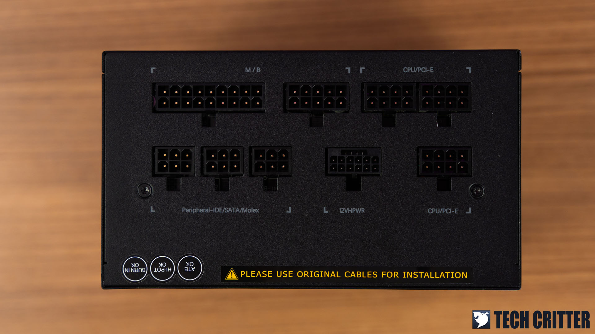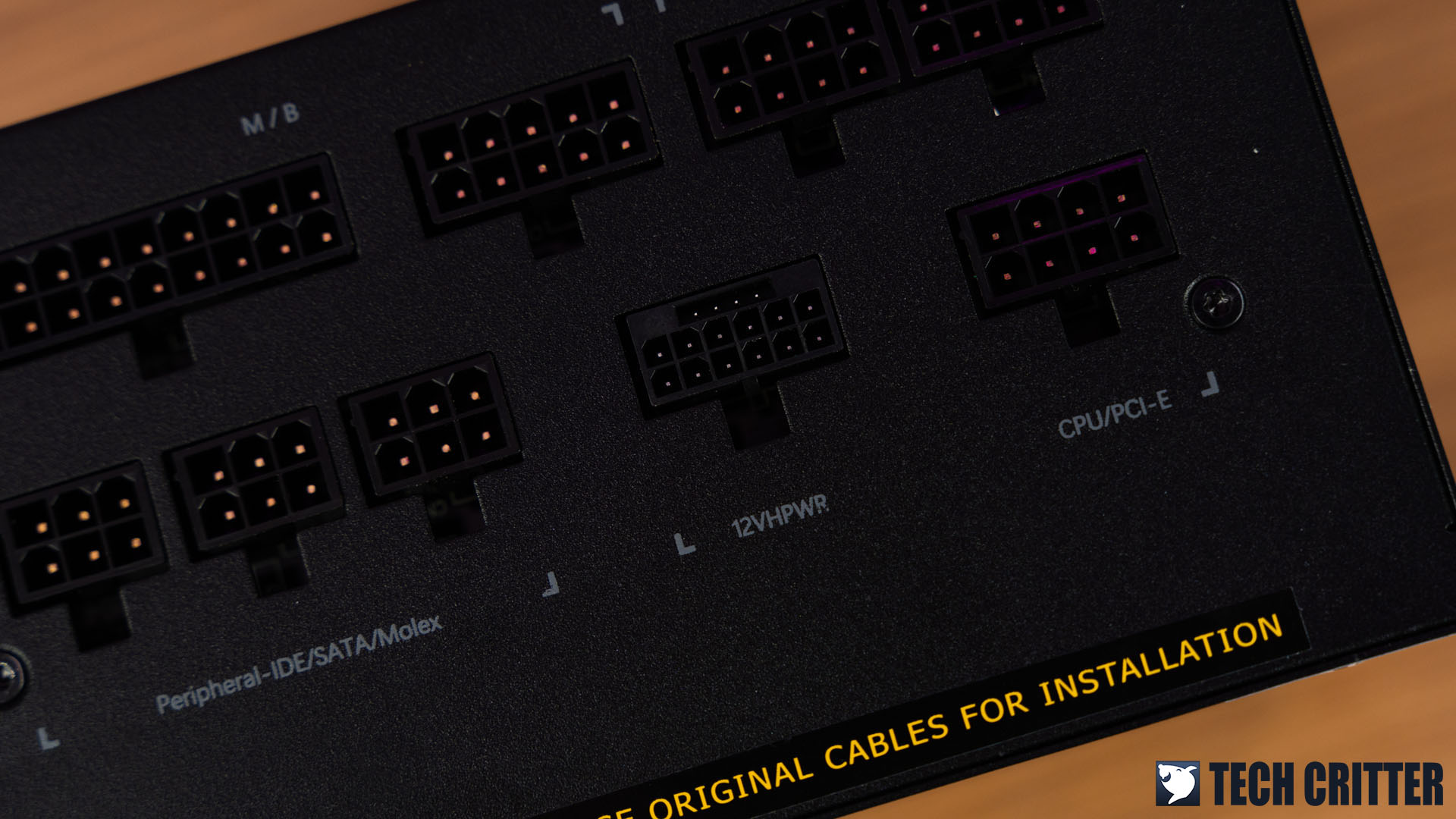 Moving on to the allocated sockets on the power supply itself, it’s pretty much what we normally see on a fully modular design power supply, but with an extra socket for the 16-pin PCIe power for PCIe 5.0 graphics cards.