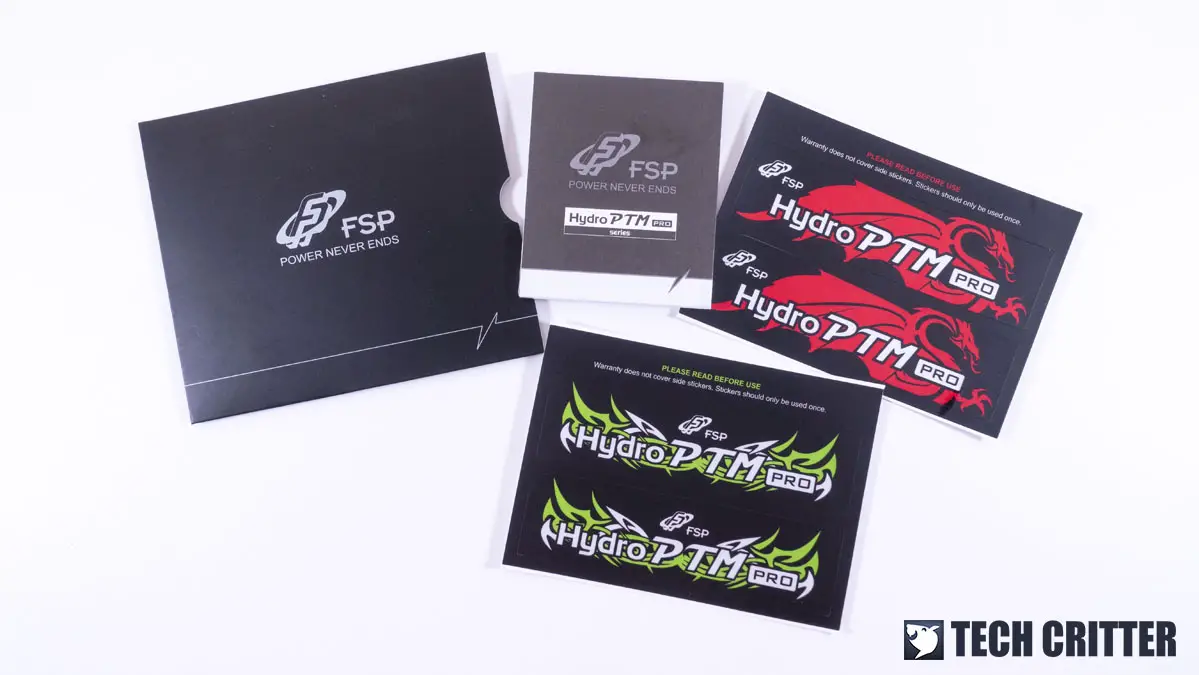 Inside the box, you’ll find the FSP Hydro PTM Pro 750W, label stickers for the power supply in case you don’t like the plain look on the stock label stickers, and all the cables you need for your build. We’re surprised to see that FSP actually included a total of three PCIe power cables for the Hydro PTM Pro 750W, which you don’t get to see that often even on the renowned brand supplies.