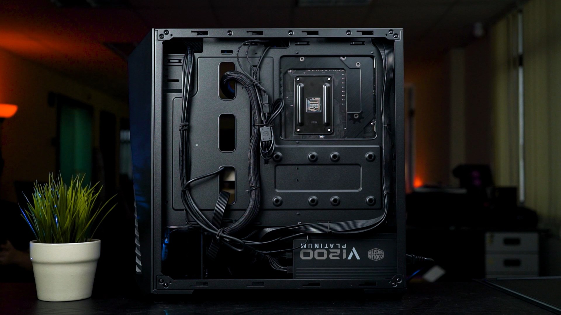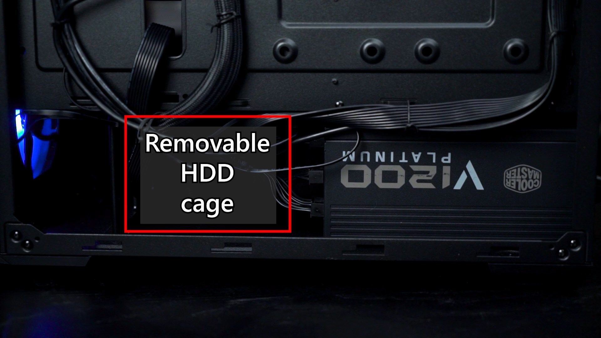 Underneath the PSU shroud is also where you can install two 3.5-inch drives. We removed our drive cage because we used a long PSU in this build – the V1200 Platinum.