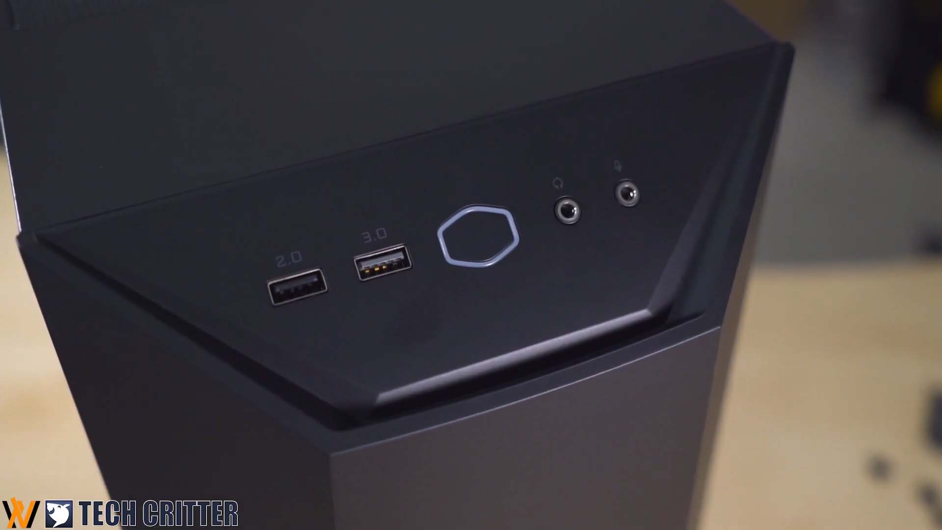 The IO panel comes with two USB Type-A ports, one USB 3.0 and one USB 2.0. The CM logo shaped power button is illuminated and there is two 3.5mm audio port for headphone and microphone respectively.