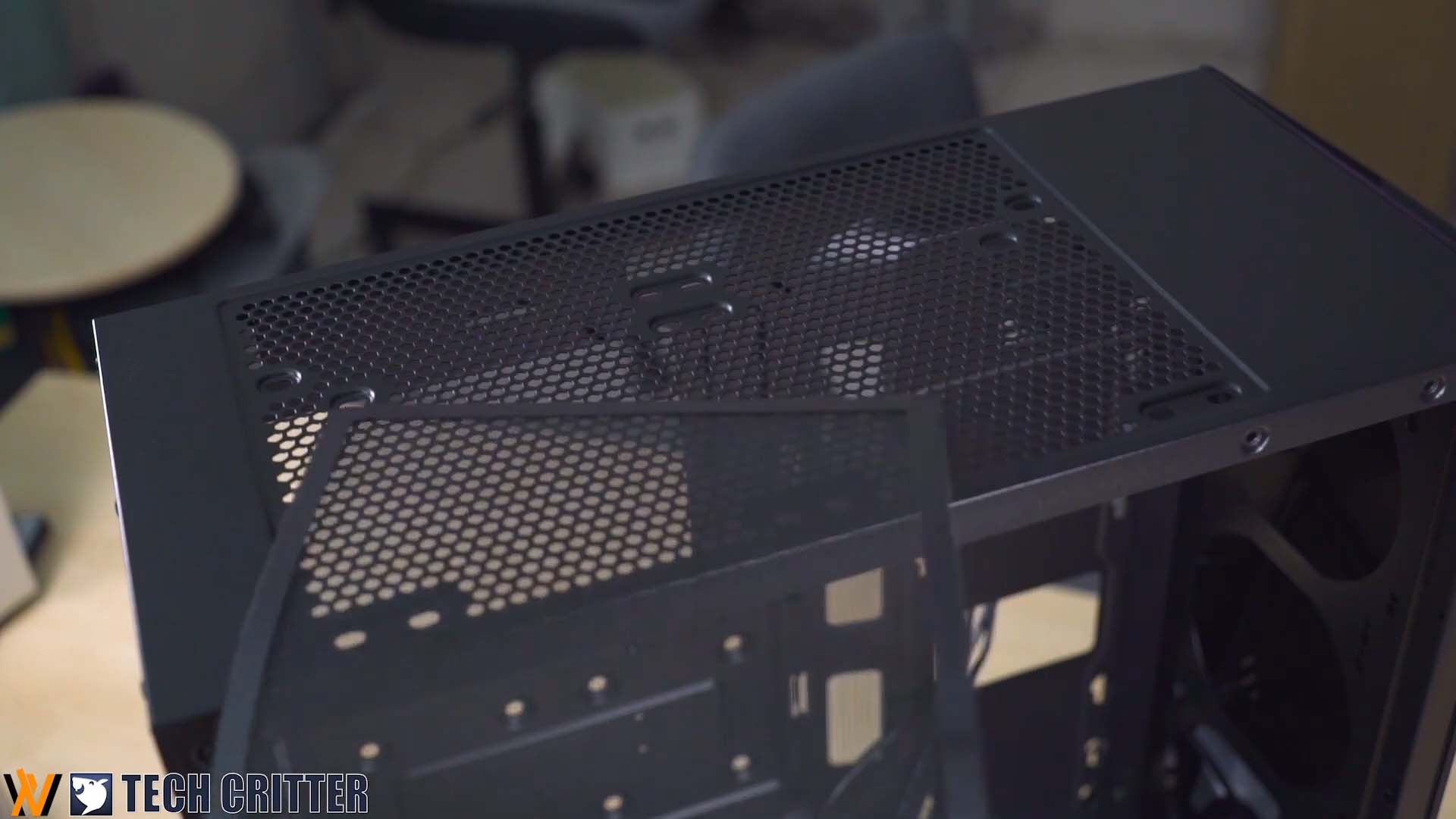 The top ventilation comes with a magnetic fan filter and supports either dual 140mm fans or dual 120mm fans. While the screw mount is slightly offset from the motherboard tray, that, however, does not guarantee an AIO push-pull configuration depending on the motherboard VRM heatsink you have.