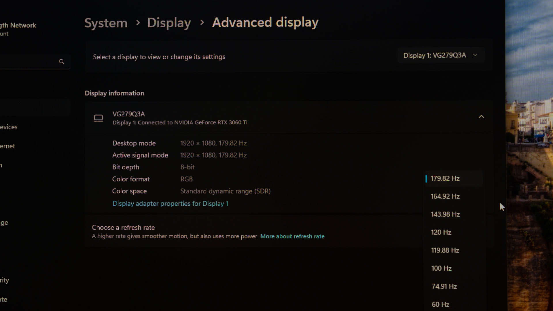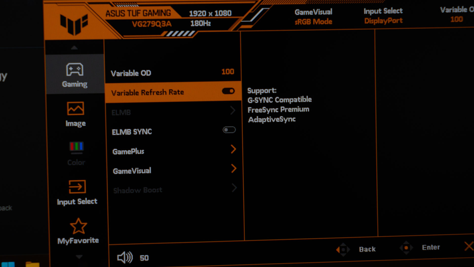 Also, please enable the variable refresh rate option. This monitor supports G-Sync, FreeSync Premium, and also Adaptive Sync standards. This eliminates screen tearing and we can disable V-sync in the game – and that also give us extra performance and a higher frame rate.