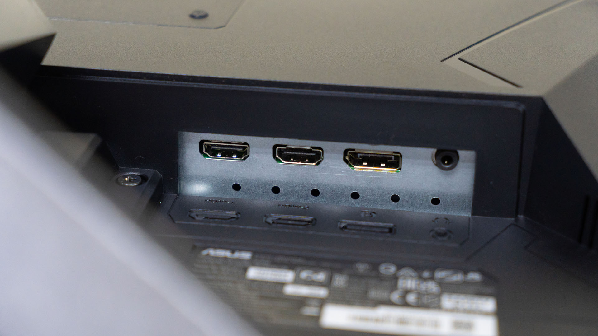 As for the ports, they’re pretty simple. We have 2x HDMI ports and a single DisplayPort 1.2 port. There is also an audio jack – and that is very useful if you’re plugging your console to this monitor.