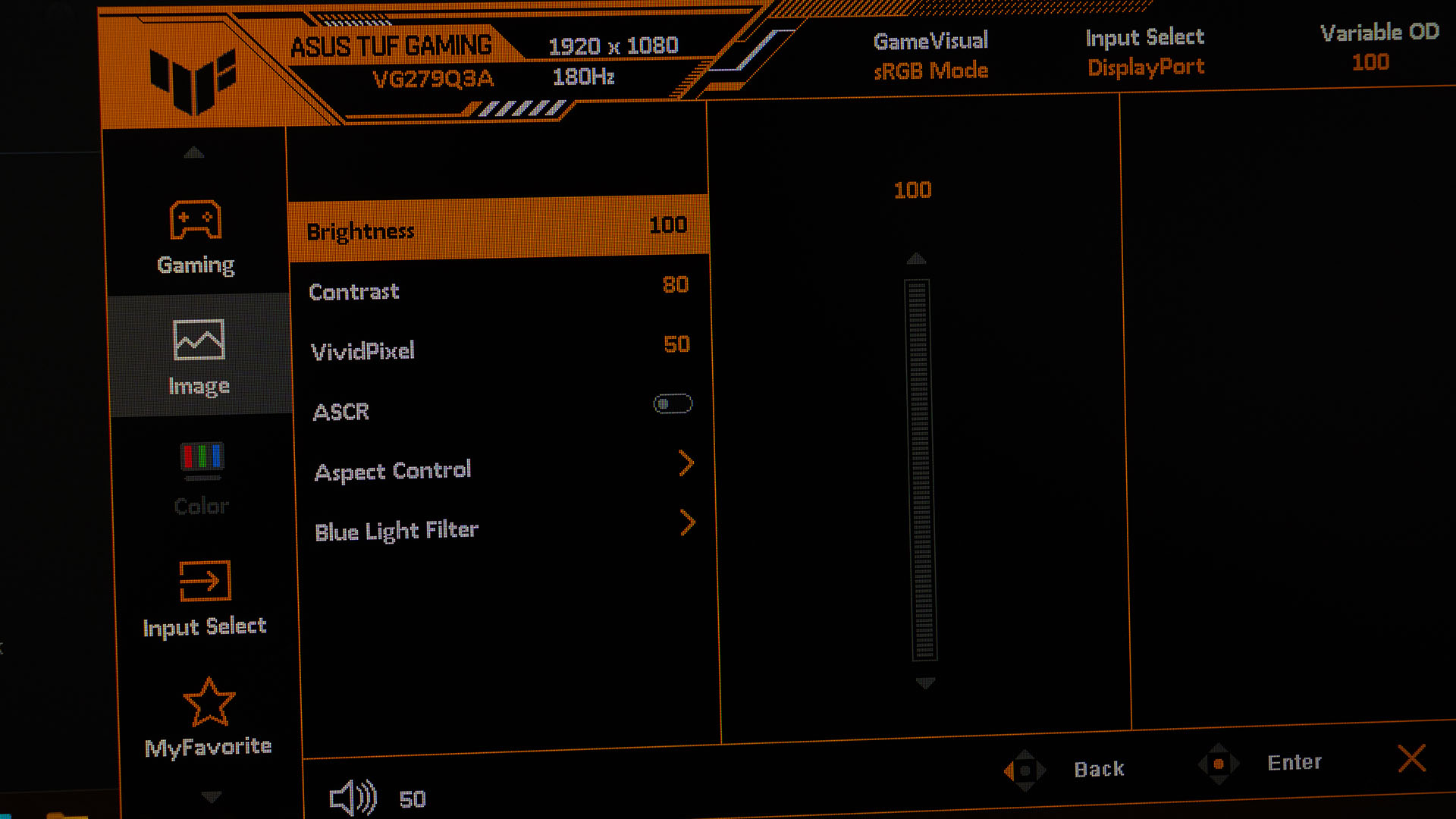 There are even more settings in the OSD menu too – like the ASCR, which stands for ASUS Smart Contrast Ratio (ASCR). It will automatically change the contrast of depending on what we’re viewing on the screen.