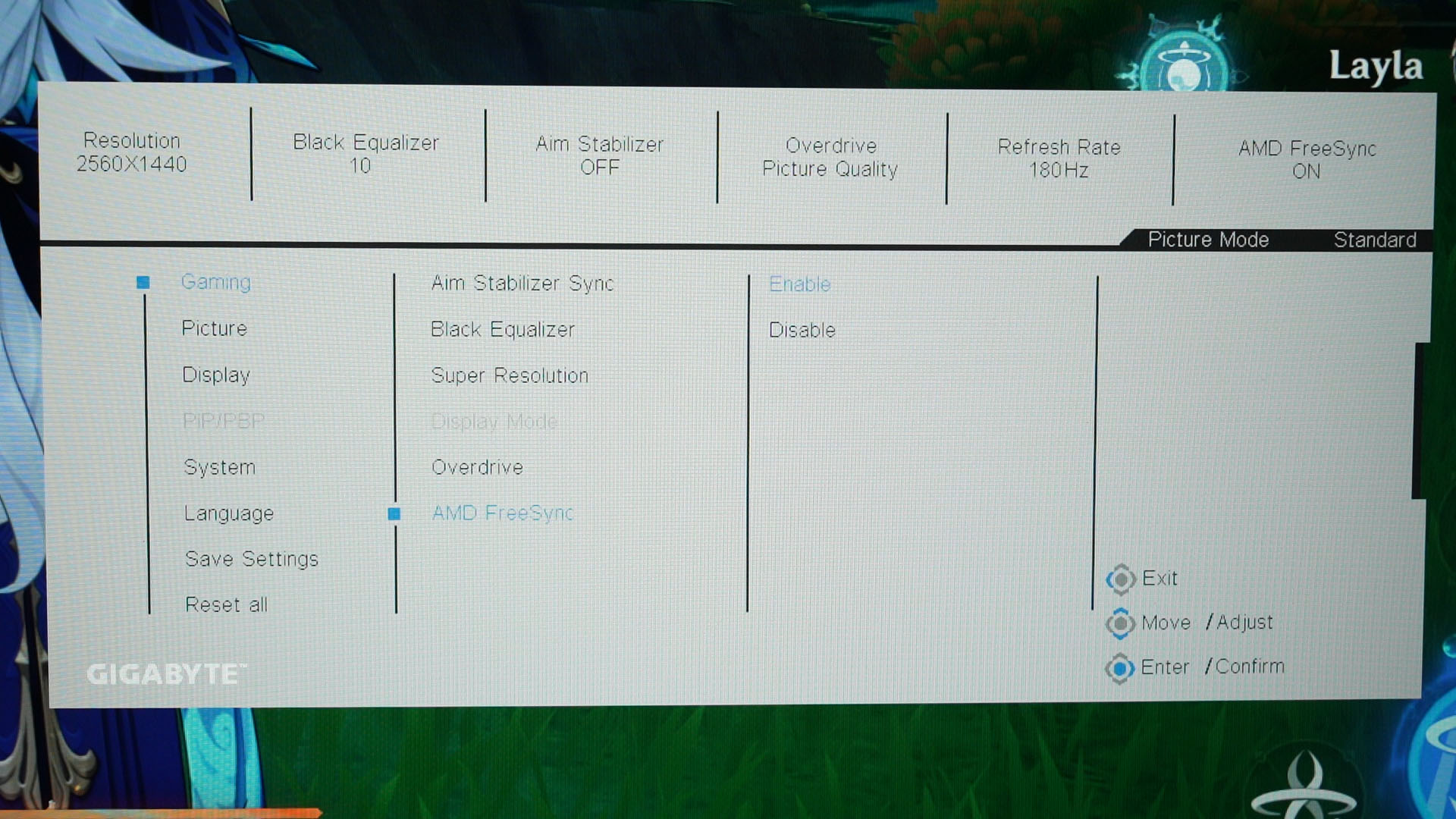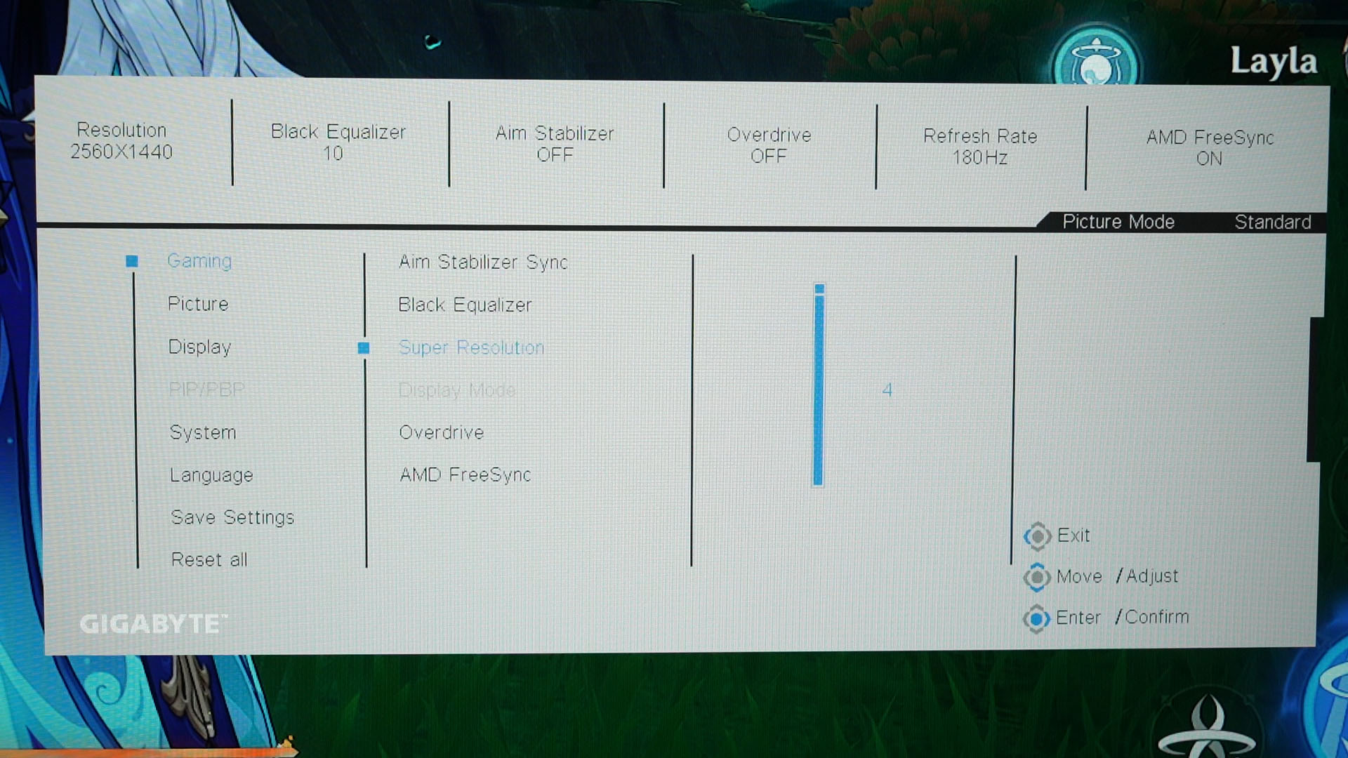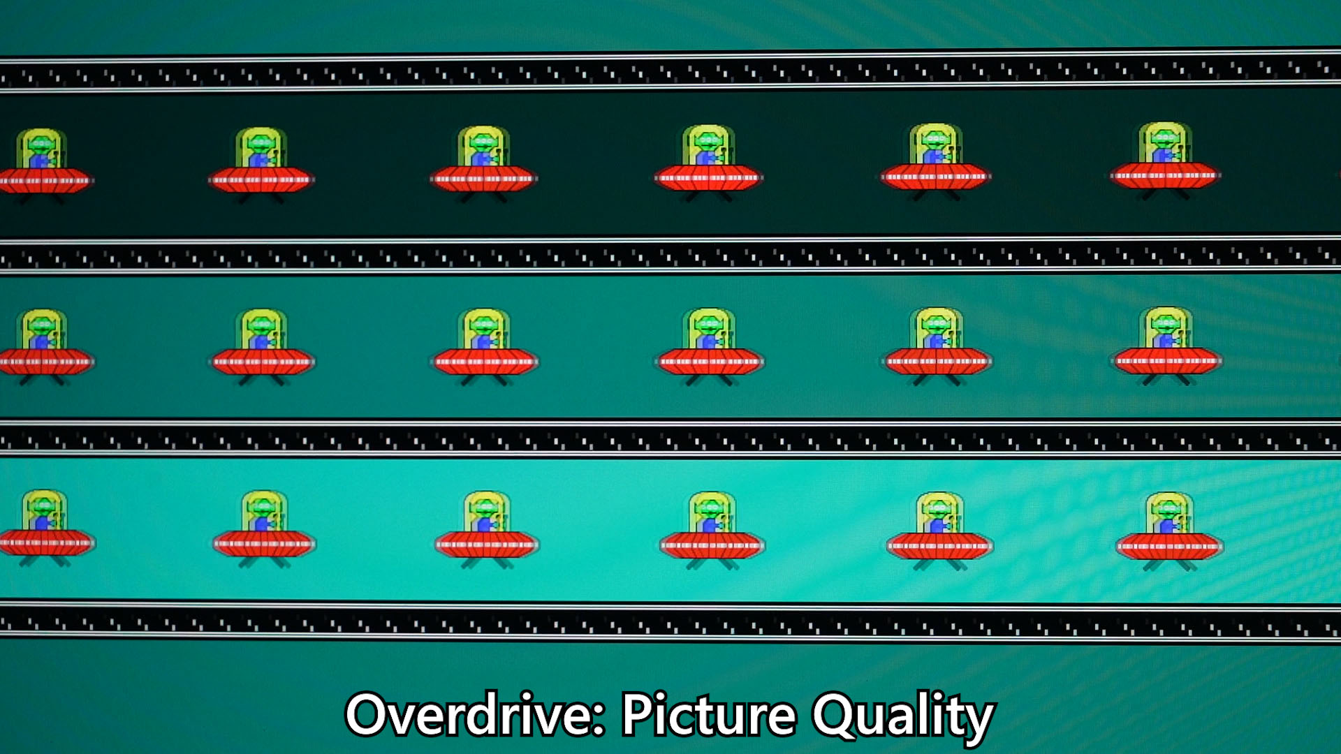 Secondly, the Overdrive option. It’s meant to cut the pixel response time and I can safely say that it does make a difference. If we turn it off, we can see a trail behind the UFO. If we turn it to Balanced or Speed (which is the maximum) then it will overcompensate and also leaves a trail.