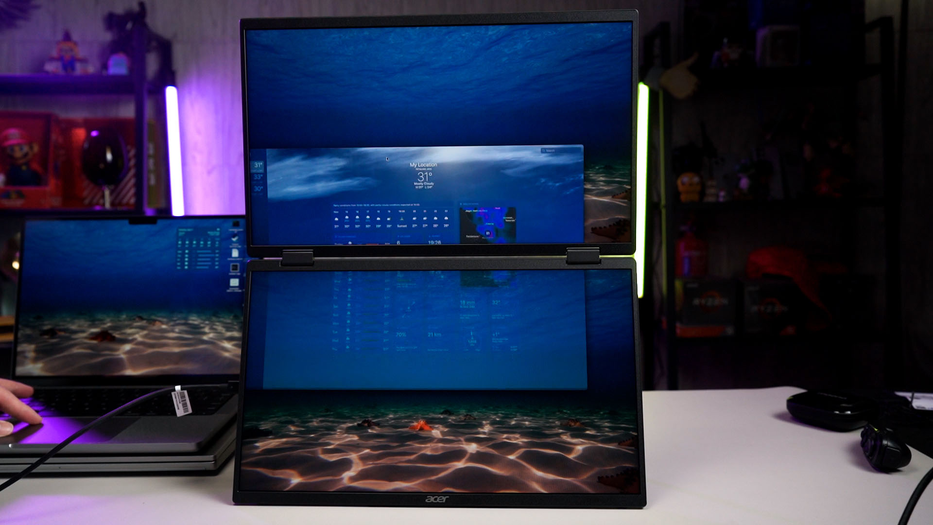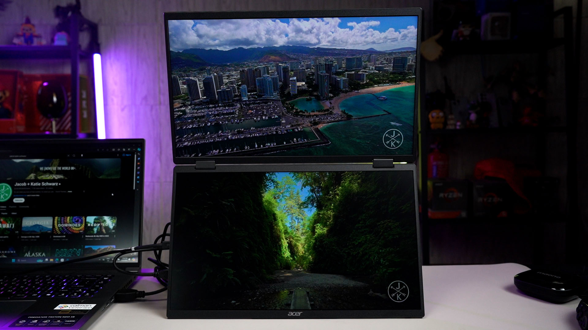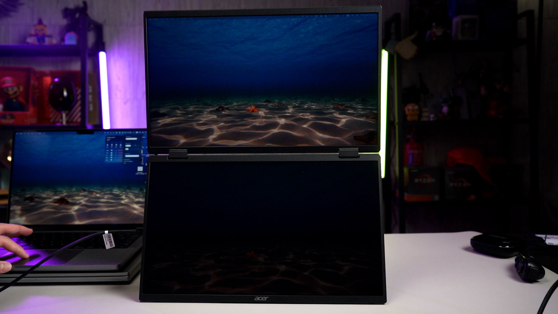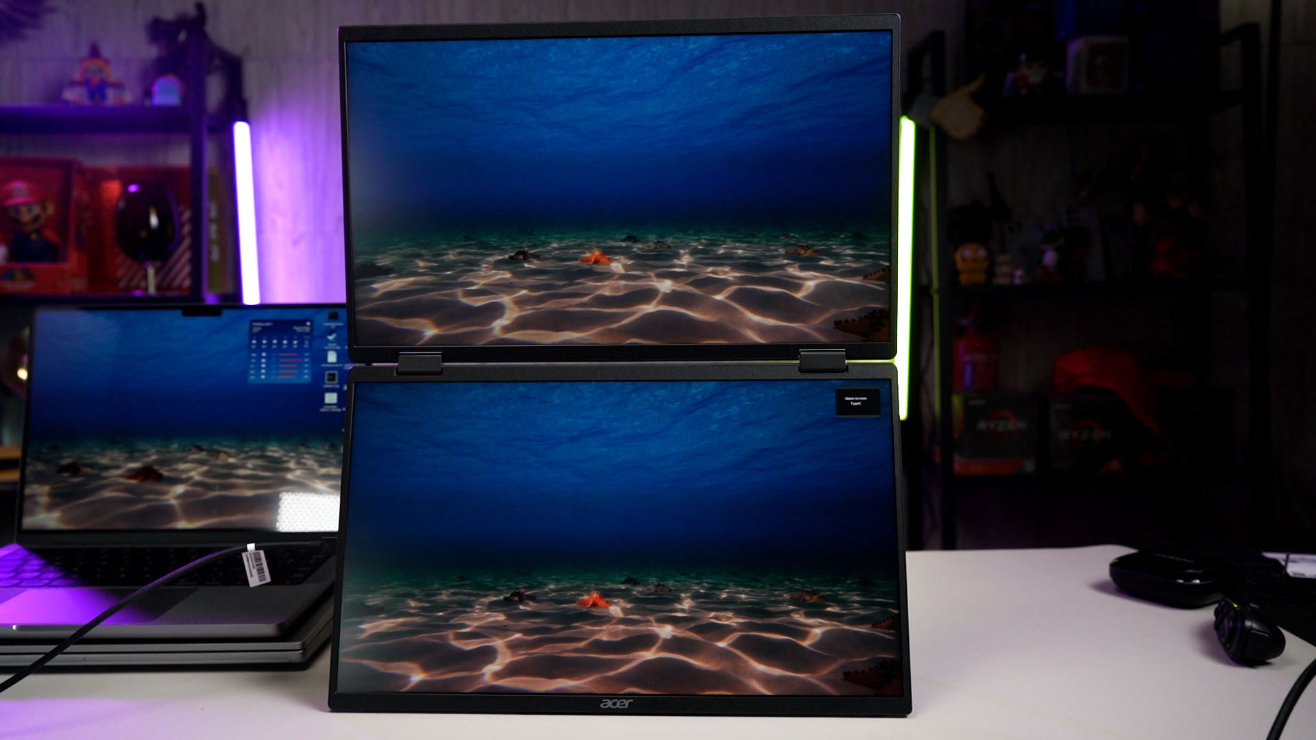 Let’s take a look at a product that Acer introduced recently. This is the Acer PD163Q, something that looks like a laptop – but it’s actually a portable monitor with two screens. As someone who more than one screen on a daily basis, how is this going to help me in my workflow?