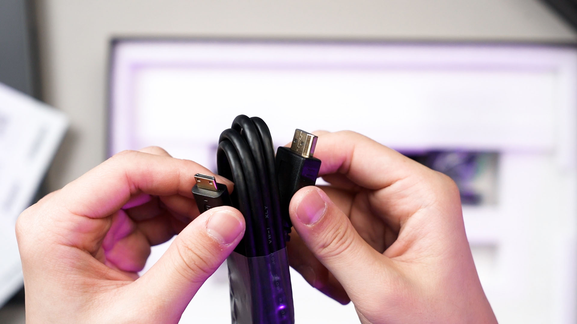 If we use the second method, we’ll need to use the HDMI cable and the included charger to power up the monitor. This way requires a lot more cables and a power plug – but we don’t need to install a driver and it’ll work on any device with a HDMI port.